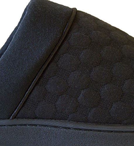 Studio : Isotoner Publisher : Isotoner Product Description Isotoner Women's Microsuede Textured Jersey Soft Natalie Clog surrounds your feet in the ultimate comfort of quality material. Your foot will be cushioned with soft foam for your comfort. This slide-styled slipper is great for travel or relaxing at home, the sole is durable for indoor/outdoor wear. Cusioned Inner provides shock absorption and resists bottoming out. Extra cushion and support, molds to your foot's shape and rebounds back after wear. Colors: Black or Sapphire. Available in sizes 6.5/7, 7.5/8, 8.5/9, 9.5/10 0