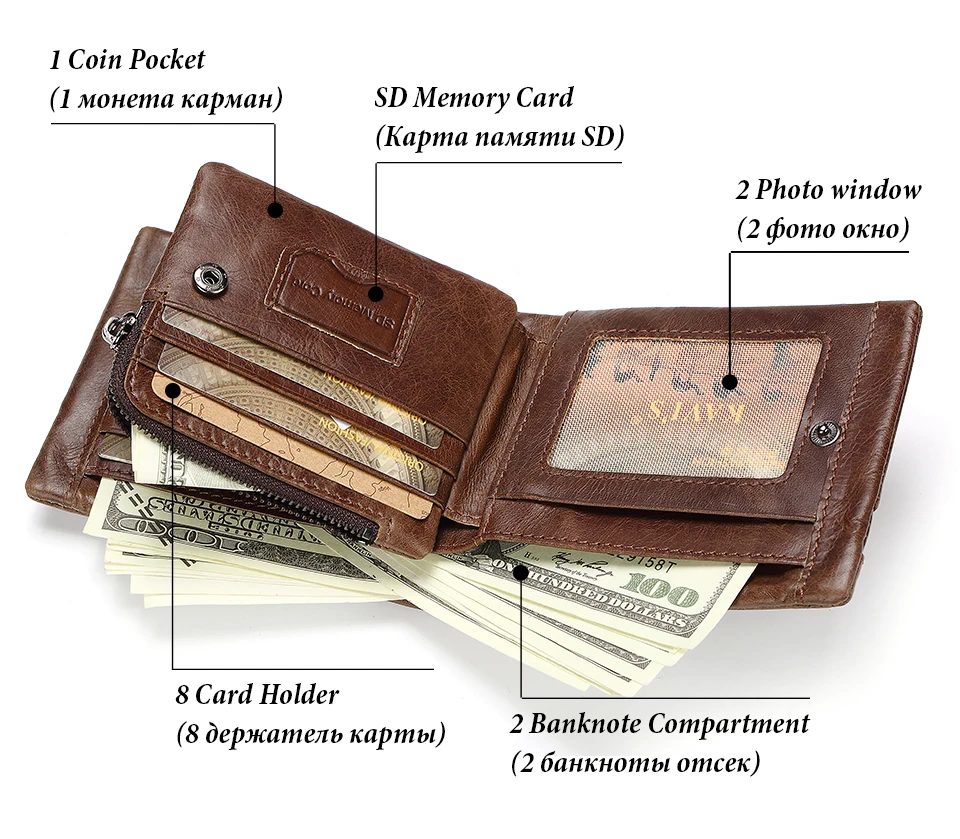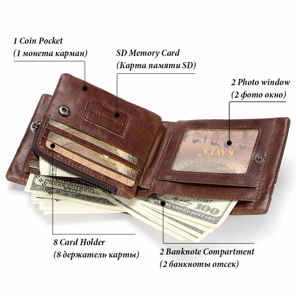 Material Composition:Crazy Horse Leather (Fashion/Vintage Men's Wallet with Card Holder)