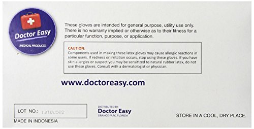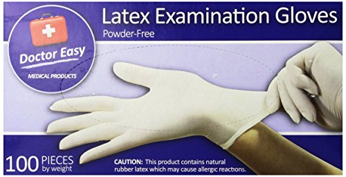 Doctor Easy Powder Free Latex Exam Gloves, Non-Sterile, Medium, 100 Count