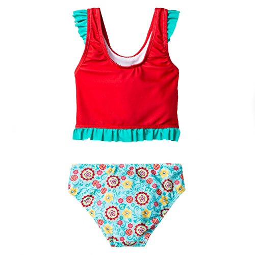 Join Princess Elena for a swim wearing this darling Disney swimsuit! Perfect for the beach or kickin' around the pool, This toddler girls bathing suit is a perfect choice! No need to worry about your UV protection in this swimsuits, as it is protecting your little one's skin with UVB 50+ UV Protection. This swimsuit is fully lined and features sublimated graphics your favorite Disney Princess, Elena of Avalor! The perfect swimwear choice for any fan of the hit show on Disney Channel!Feature