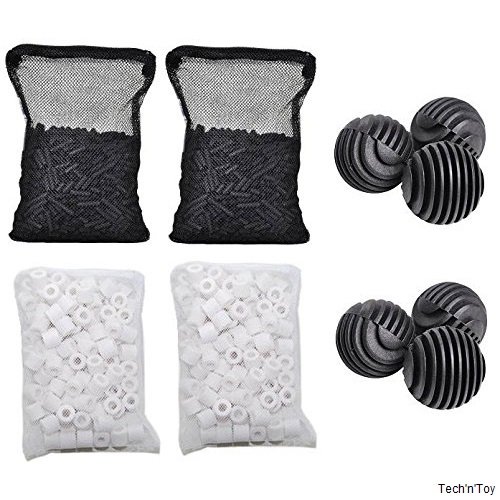 - Includes: (2) 1lb activated carbon in mesh media bags, 80 pieces of 20mm bio balls and (2) 1lb ceramic rings in mesh media bag