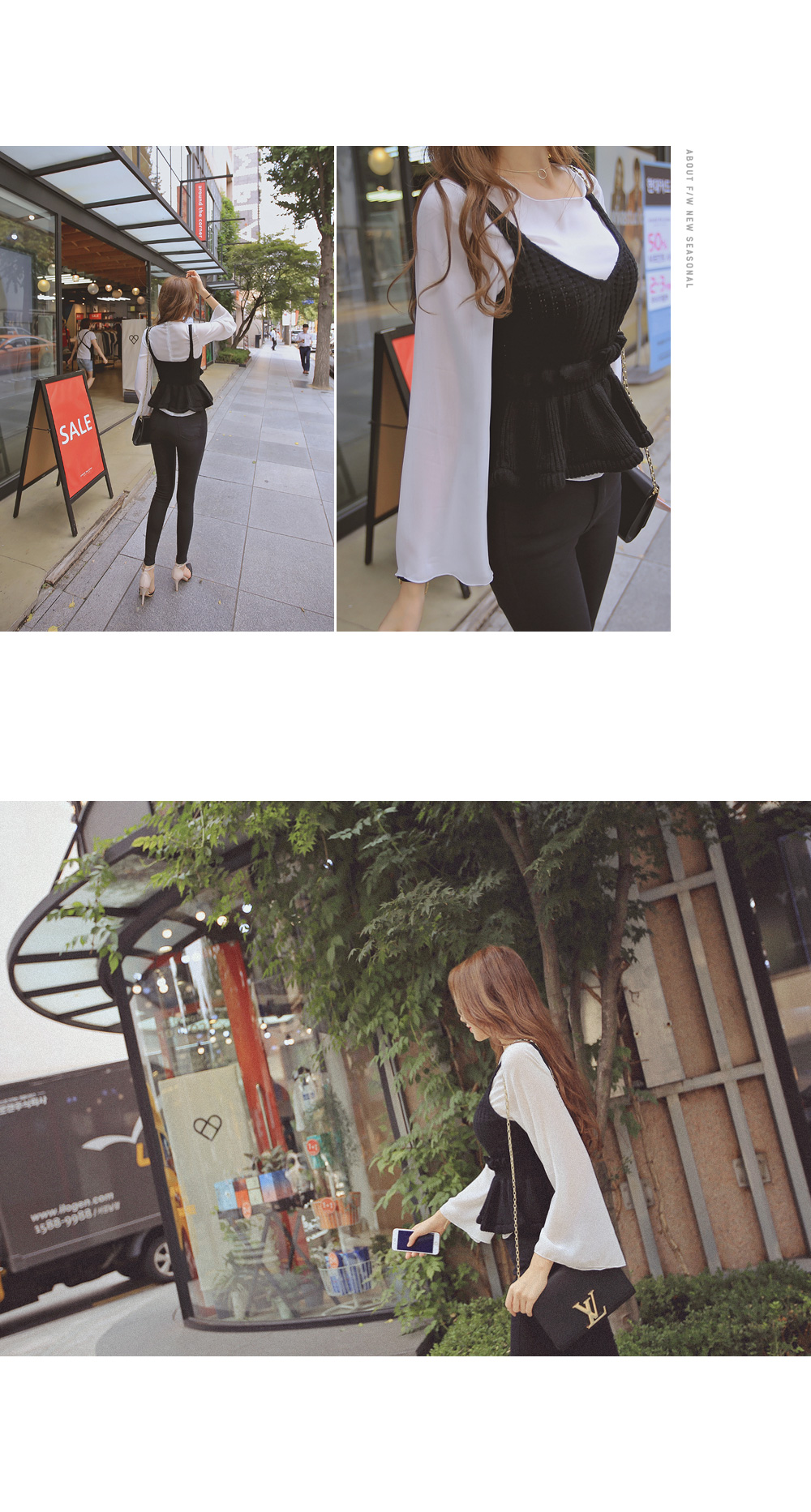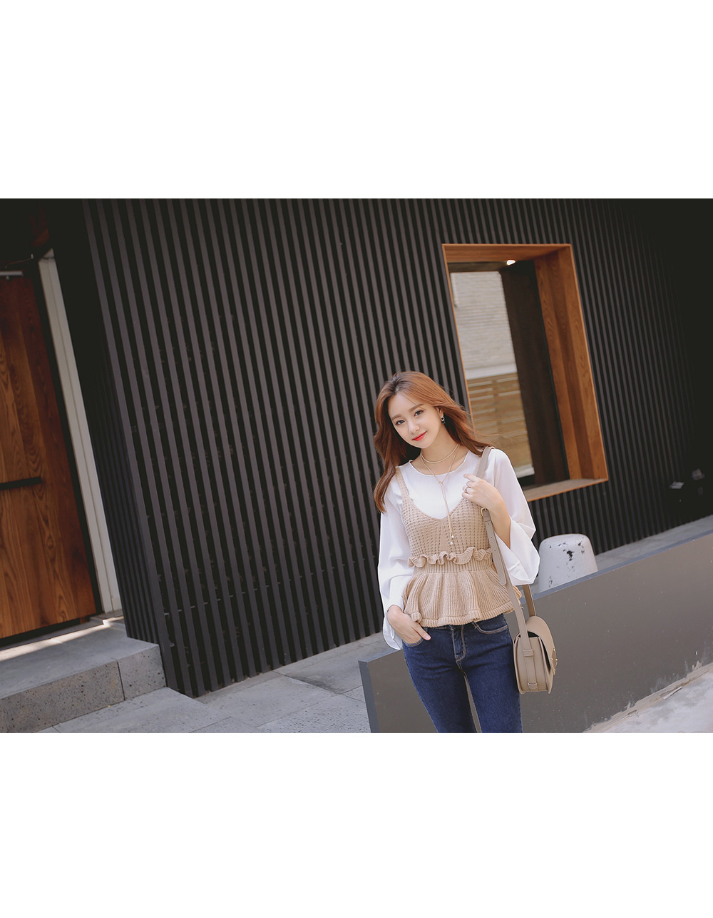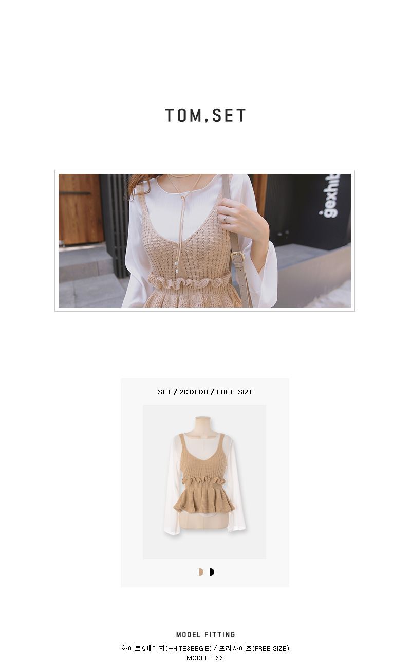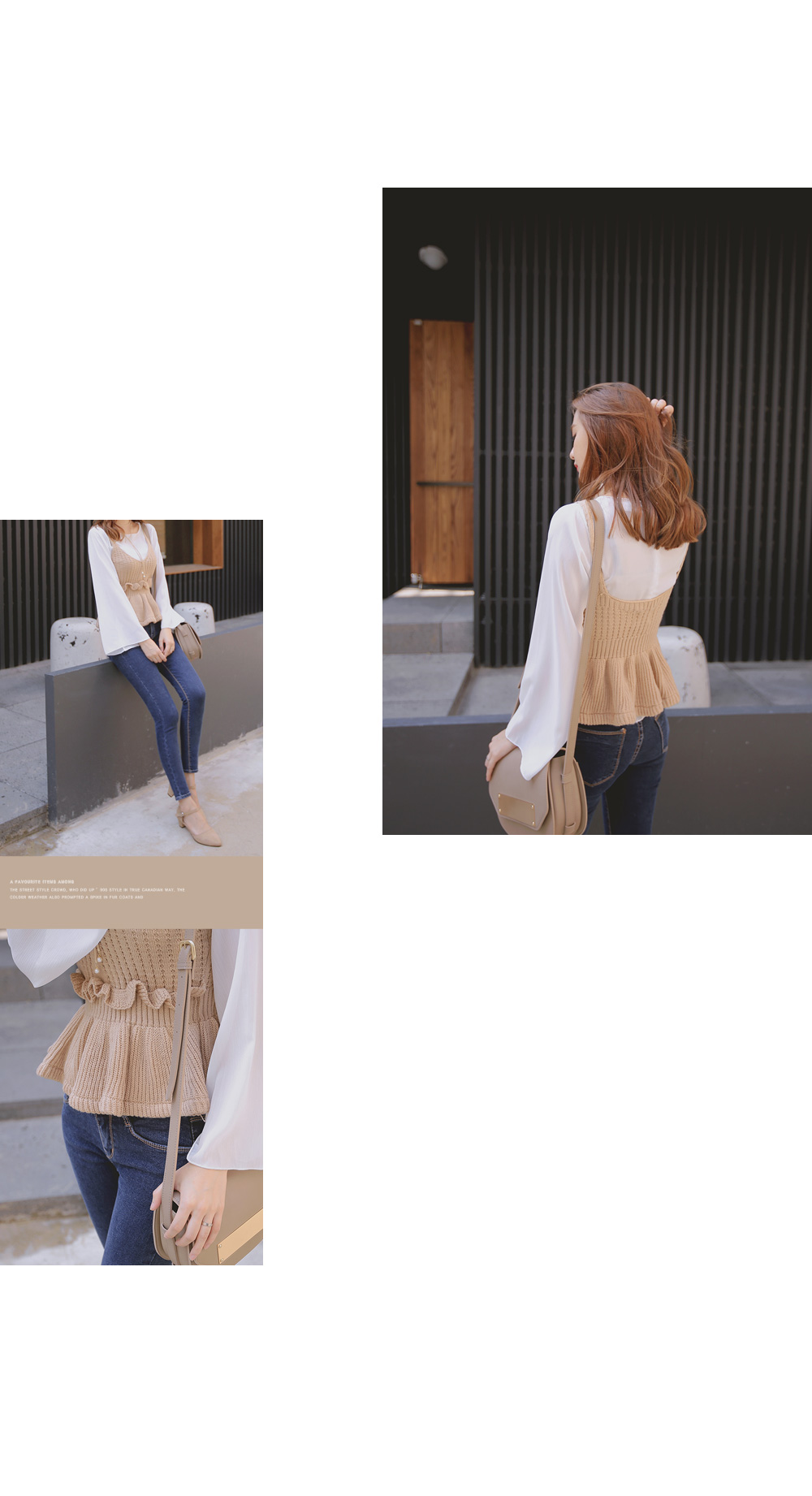 블라우스와 니트 뷔스티에가 세트로 구성된 아이템을 소개합니다.