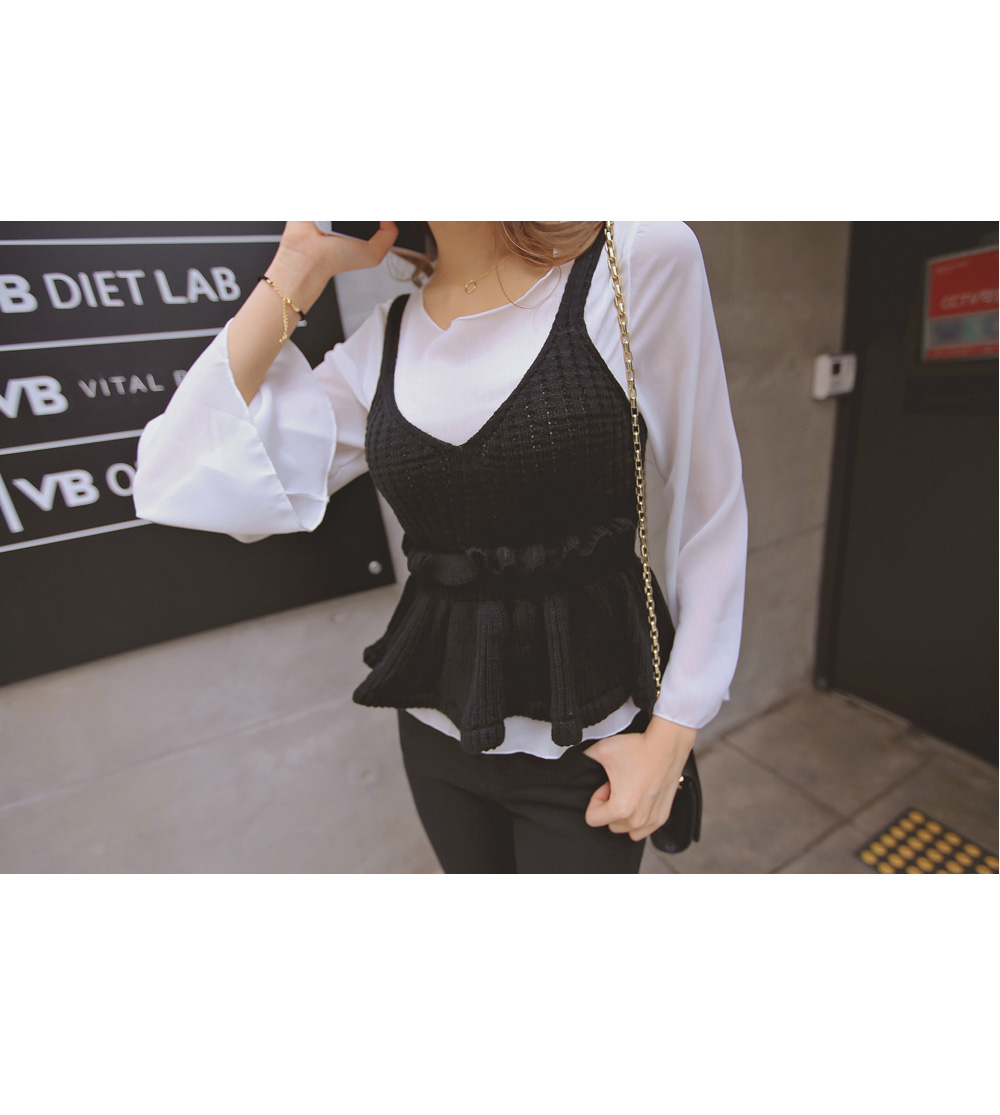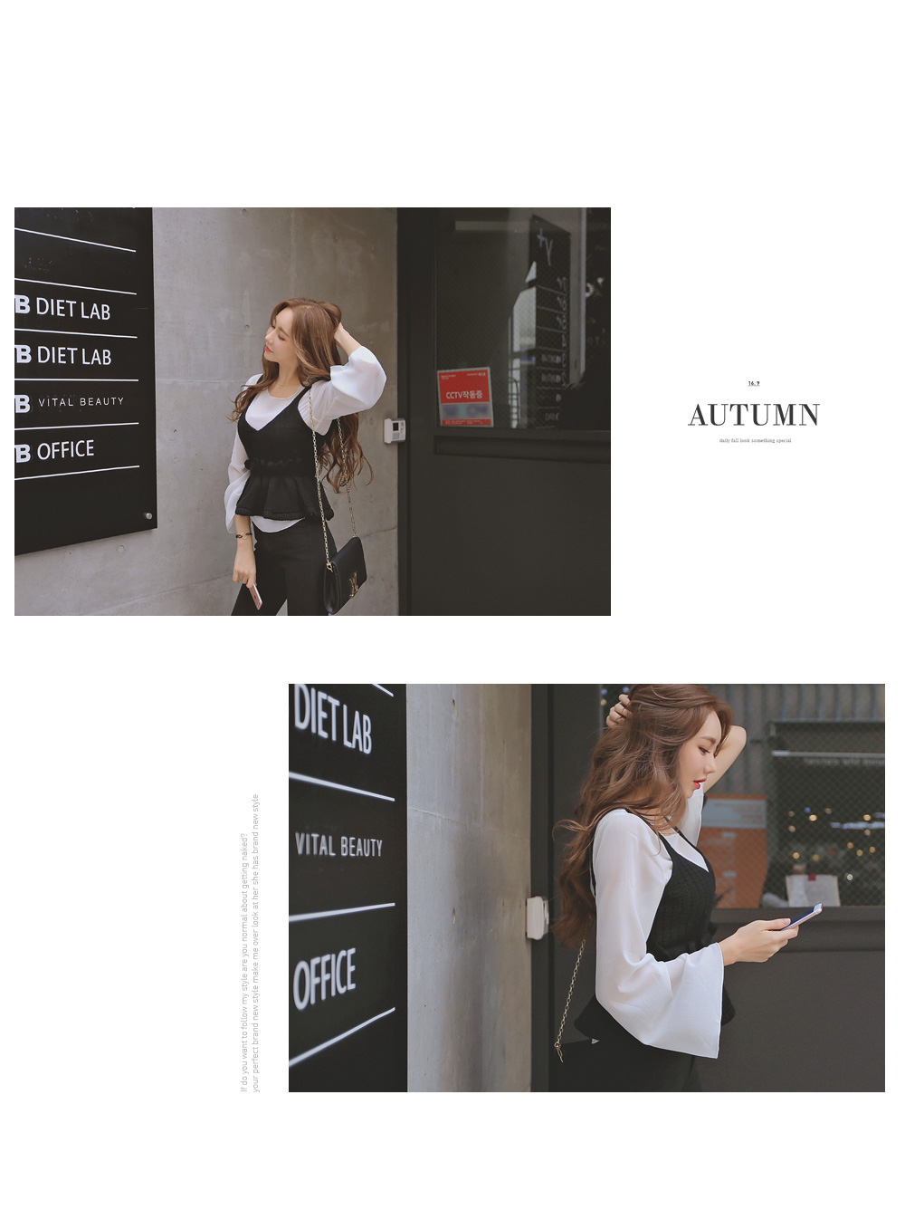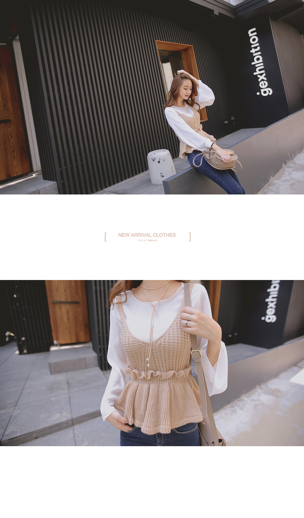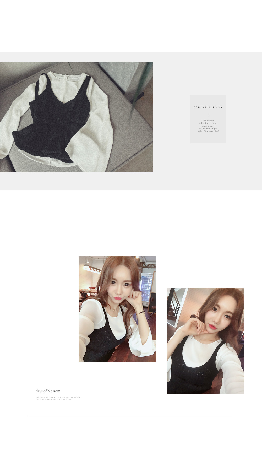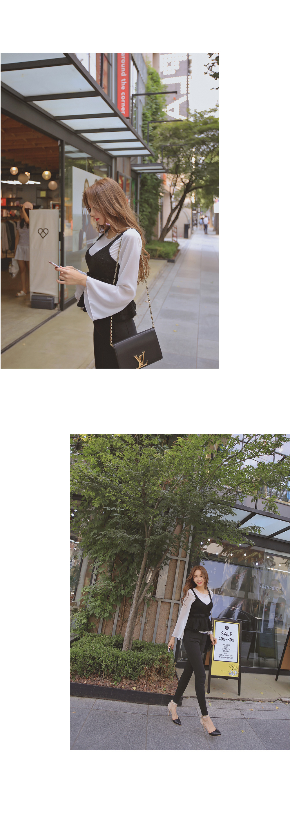 블라우스와 니트 뷔스티에가 세트로 구성된 아이템을 소개합니다.