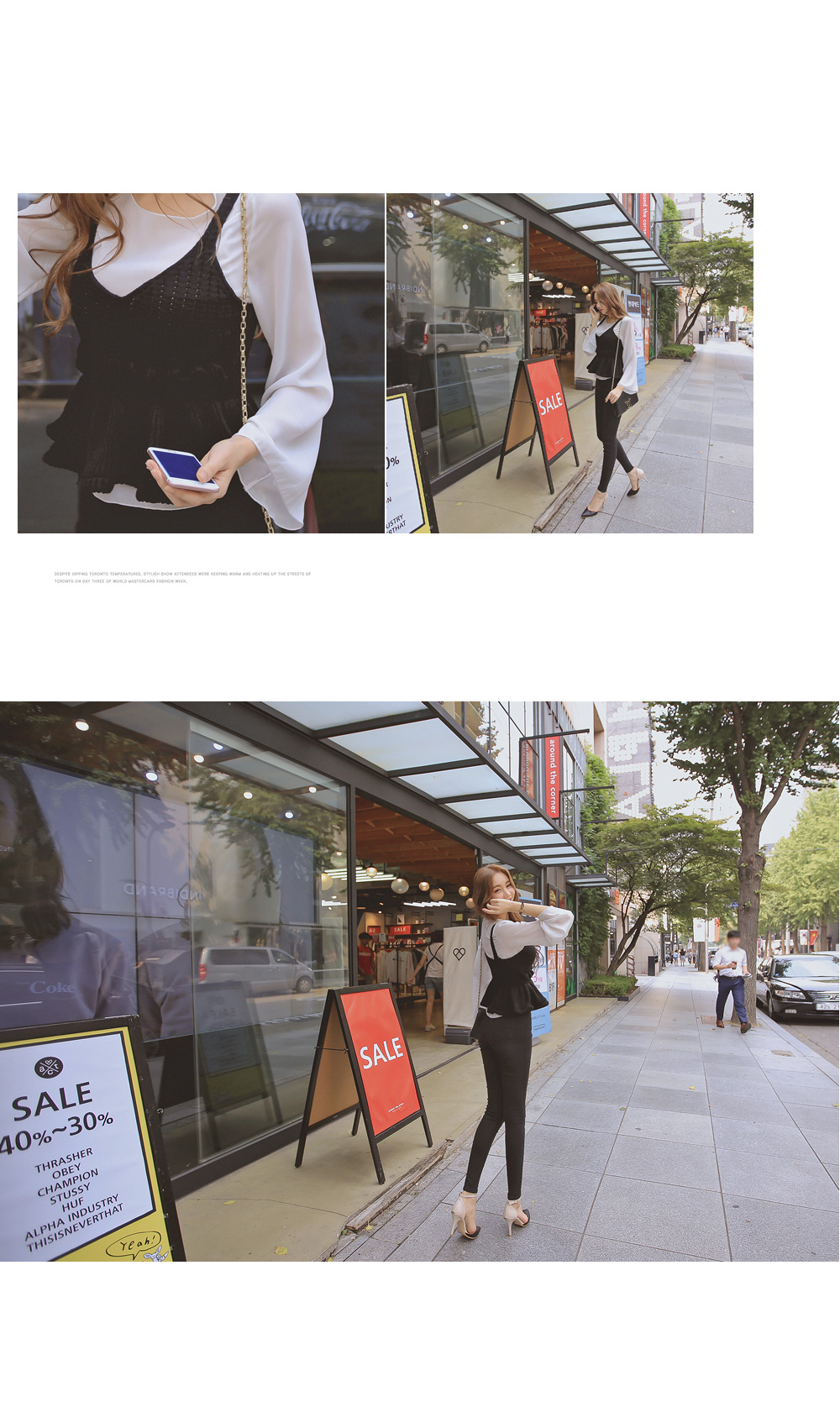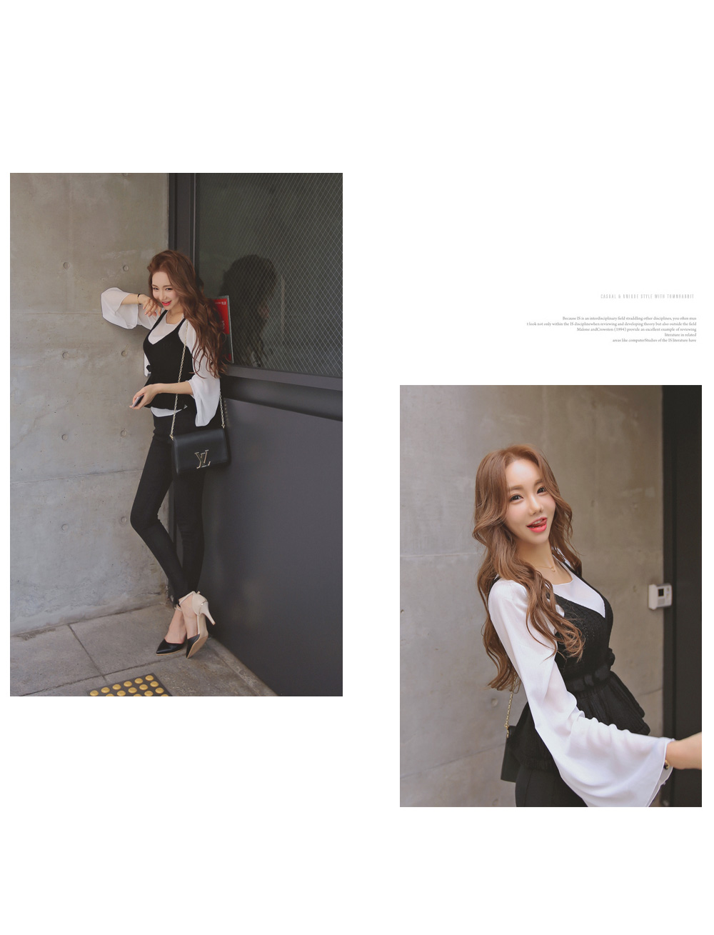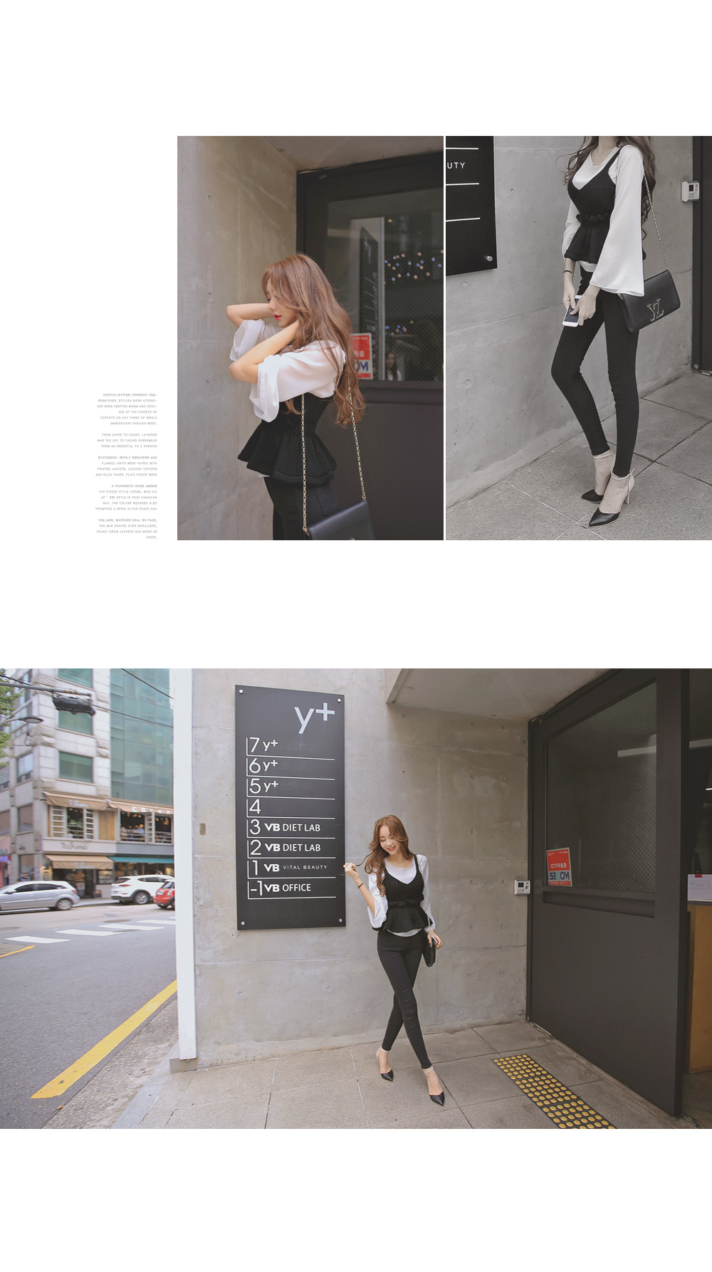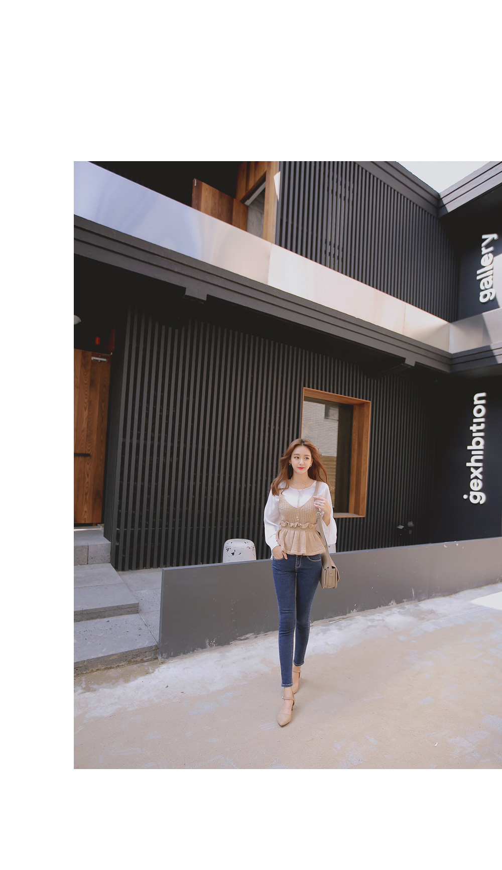 블라우스와 니트 뷔스티에가 세트로 구성된 아이템을 소개합니다.