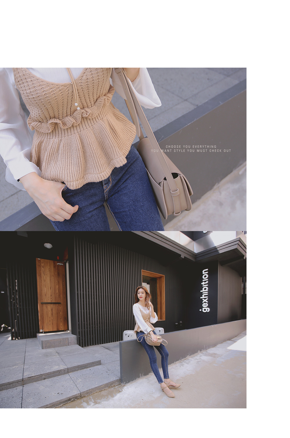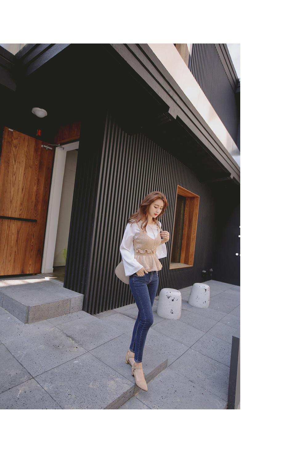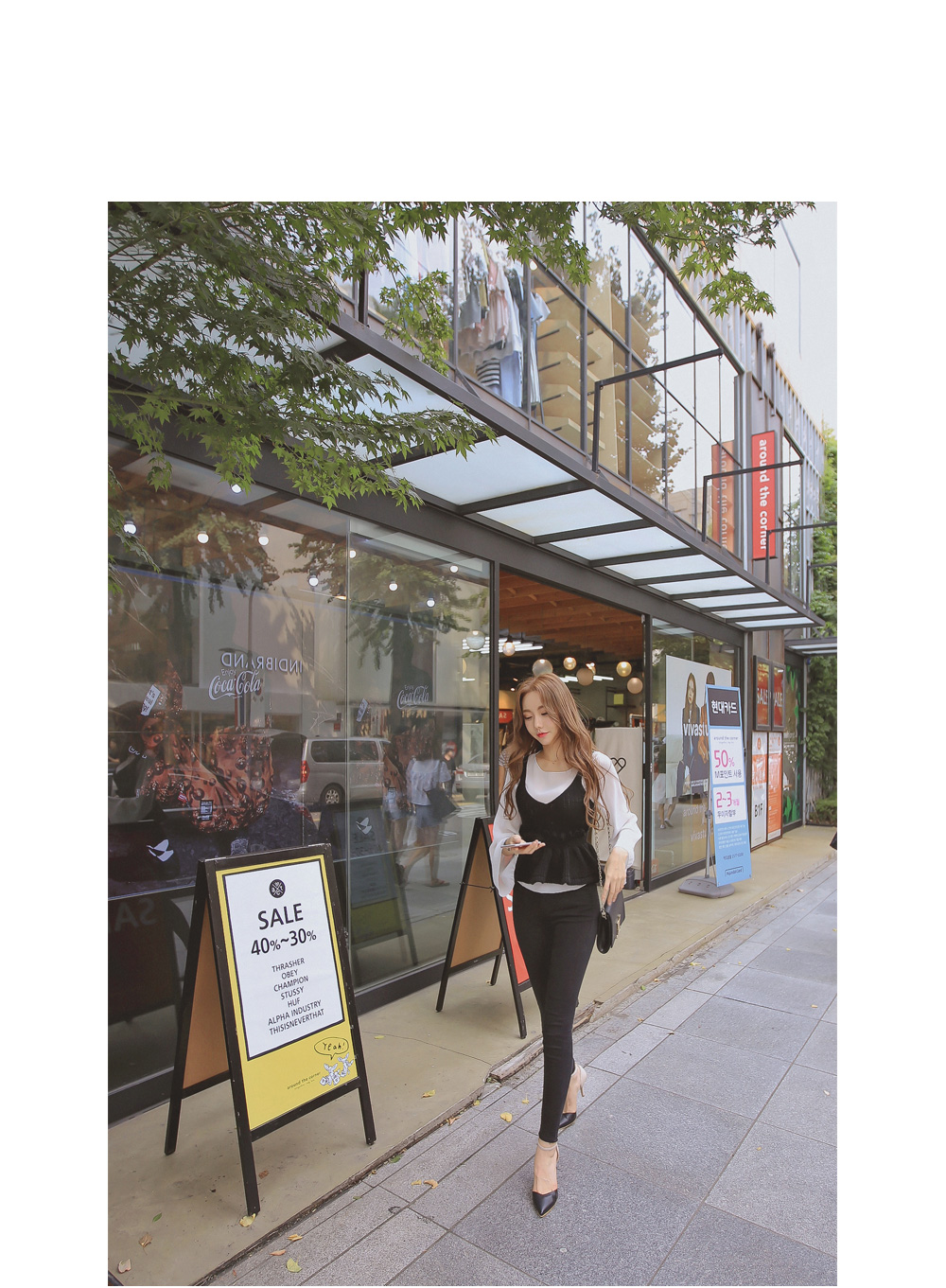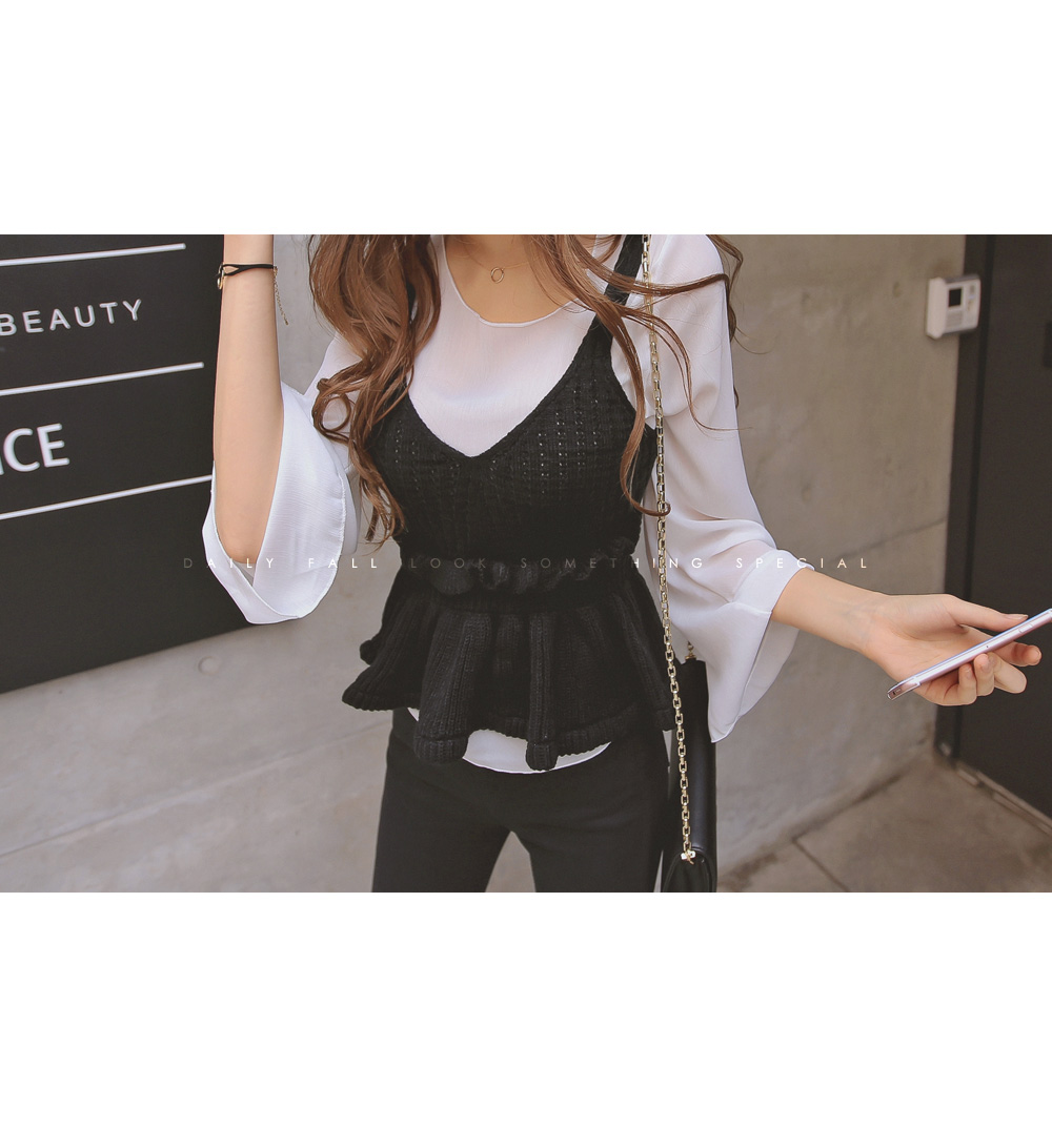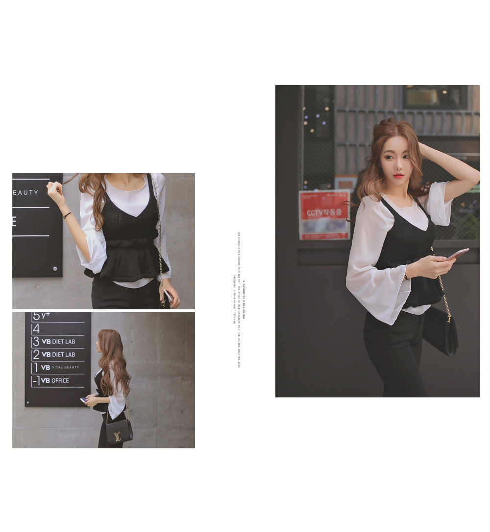블라우스와 니트 뷔스티에가 세트로 구성된 아이템을 소개합니다.