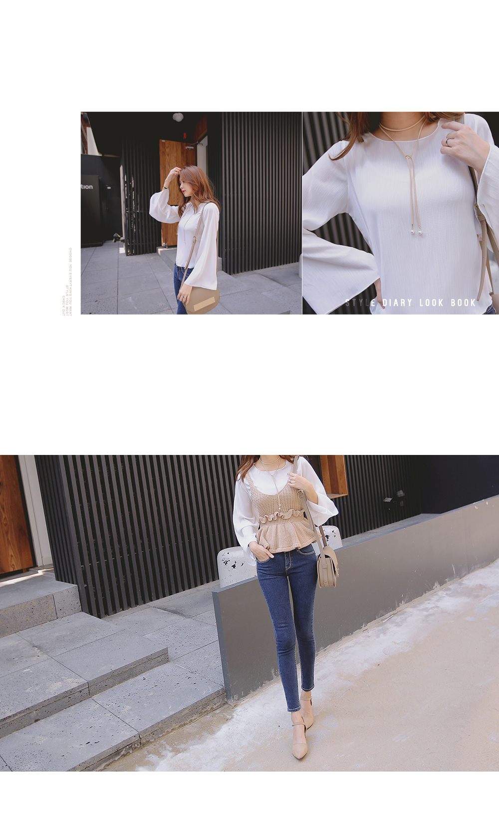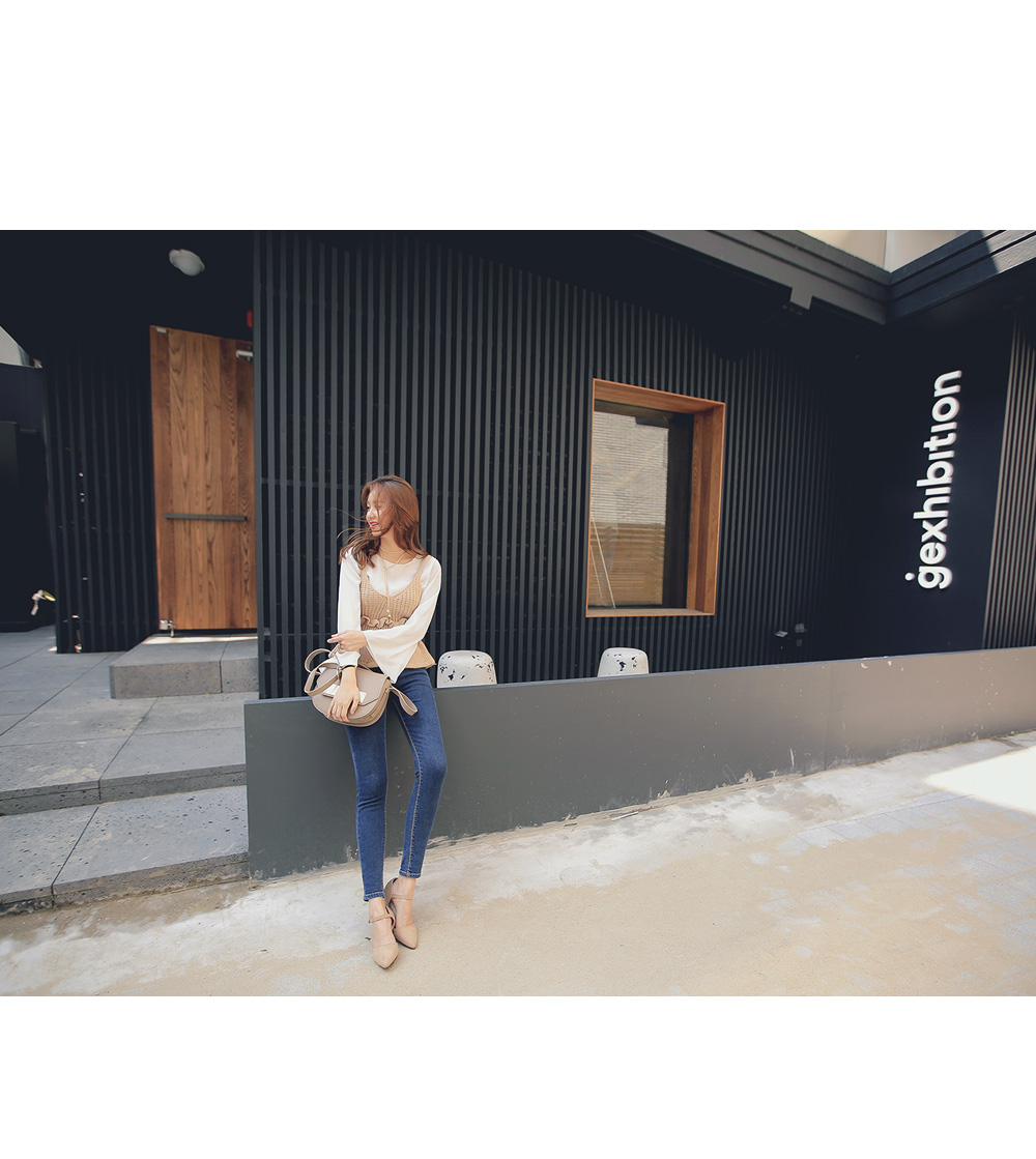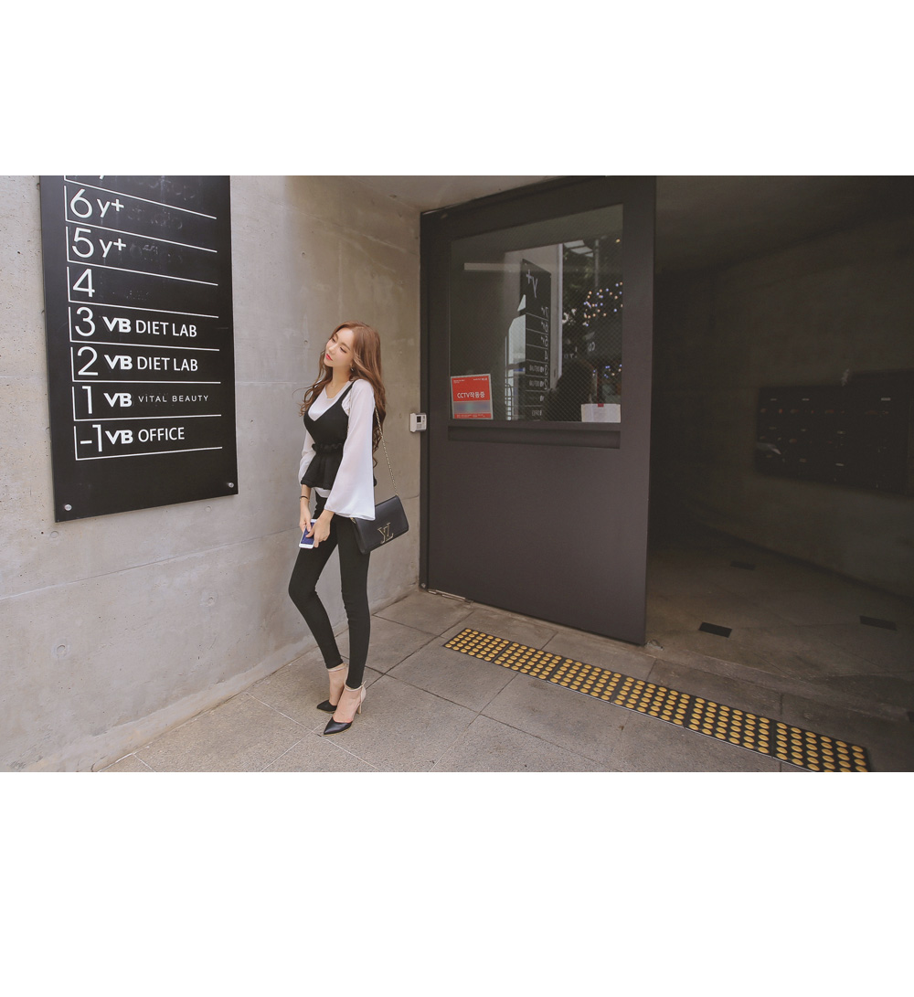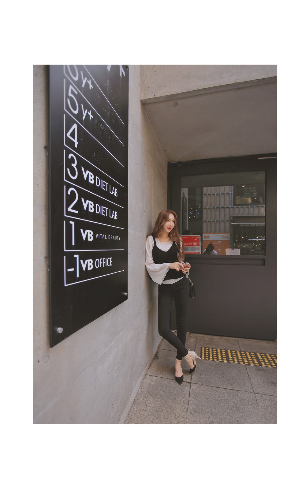 블라우스와 니트 뷔스티에가 세트로 구성된 아이템을 소개합니다.
