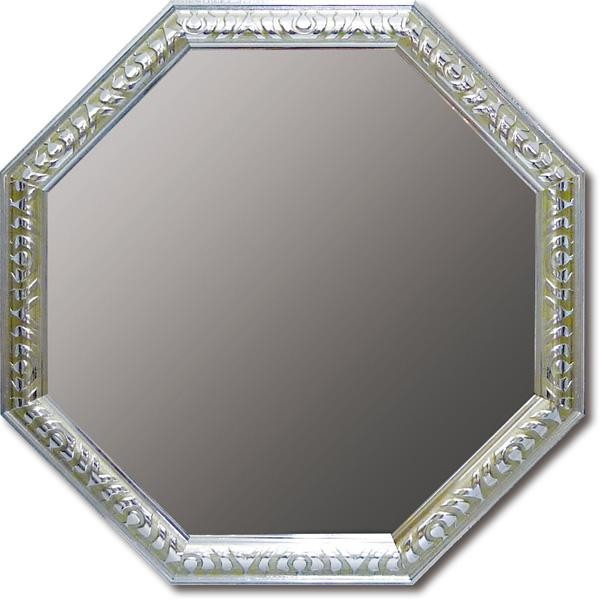 アンティーク調のフレームで彩られた八角形のミラーです。