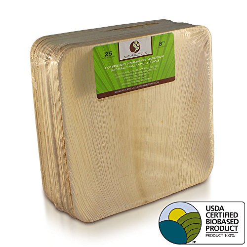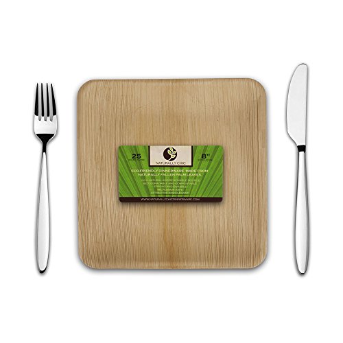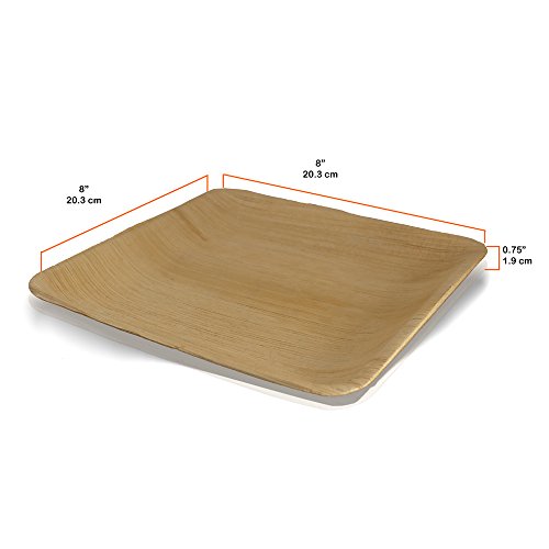 Disposable Eco Palm Paper Plates: Square Compostable, Biodegradable Heavy Duty Dinner Party Plate - Comparable to Bamboo Wood Fiber - Nice, Elegant Looking Plant Based Dishware: 25 Pack