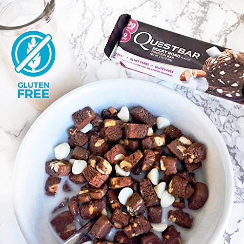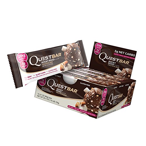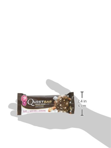 Quest Nutrition Protein Bar, Rocky Road, 20g Protein, 5g Net Carbs, 210 Cals, High Protein Bars, Low Carb Bars, Gluten Free, Soy Free, 2.1 oz Bar, 12 Count