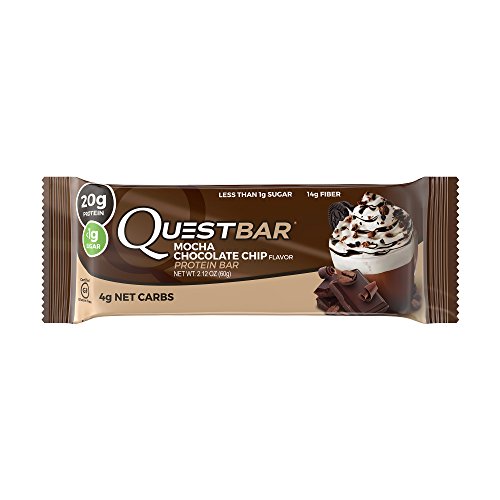 Quest Nutrition Protein Bar, Mocha Chocolate Chip, 20g Protein, 4g Net Carbs, 180 Cals, High Protein Bars, Low Carb Bars, Gluten Free, Soy Free, 2.1 oz Bar, 12 Count