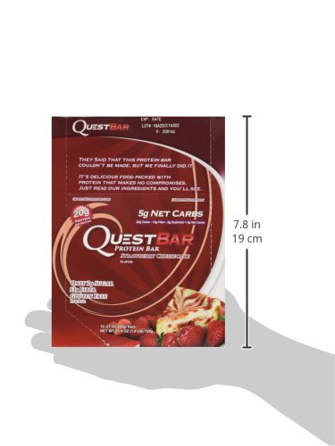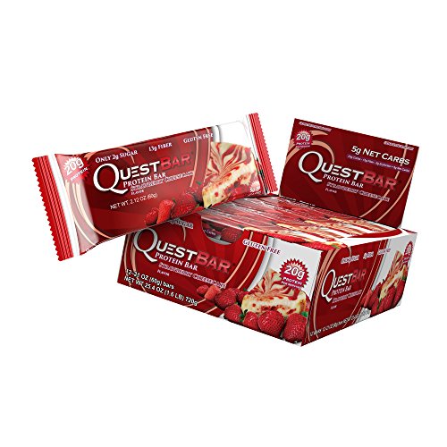 Quest Nutrition Protein Bar, Strawberry Cheesecake, 20g Protein, 5g Net Carbs, 180 Cals, High Protein Bars, Low Carb Bars, Gluten Free, Soy Free, 2.1 oz Bar, 12 Count