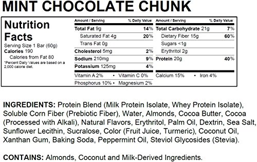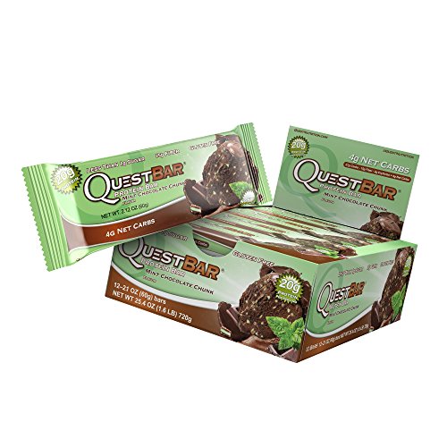 Quest Nutrition Protein Bar, Mint Chocolate Chunk, 20g Protein, 4g Net Carbs, 200 Cals, High Protein Bars, Low Carb Bars, Gluten Free, Soy Free, 2.1 oz Bar, 12 Count
