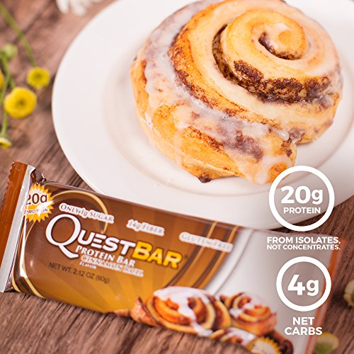 Quest Nutrition Protein Bar, Cinnamon Roll, 20g Protein, 4g Net Carbs, 180 Cals, High Protein Bars, Low Carb Bars, Gluten Free, Soy Free, 2.1 oz Bar, 12 Count
