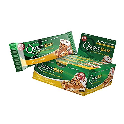Quest Nutrition Protein Bar, Peanut Butter Supreme, 20g Protein, 5g Net Carbs, 210 Cals, High Protein Bars, Low Carb Bars, Gluten Free, Soy Free, 2.1 oz Bar, 12 Count