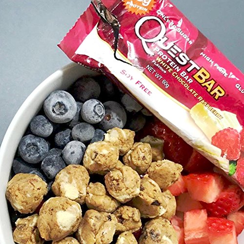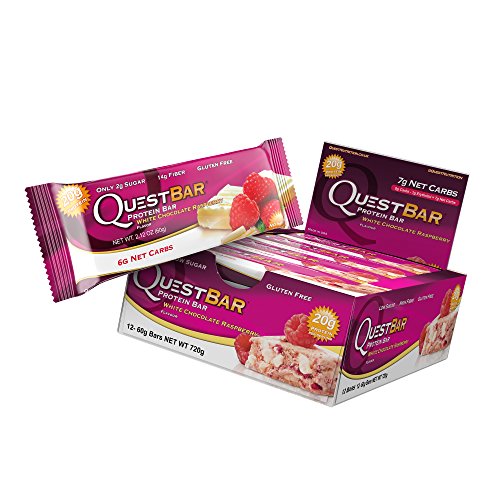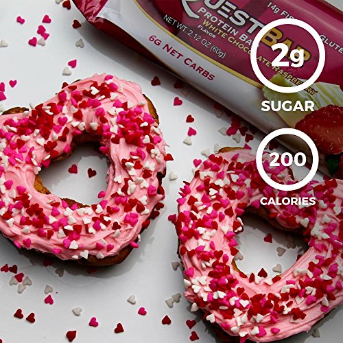 Quest Nutrition Protein Bar, White Chocolate Raspberry, 20g Protein, 6g Net Carbs, 200 Cals, High Protein Bars, Low Carb Bars, Gluten Free, Soy Free, 2.1 oz Bar, 12 Count