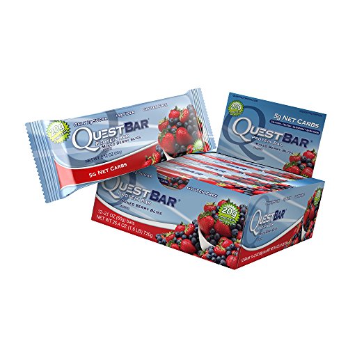 Quest Nutrition Protein Bar, Mixed Berry Bliss, 20g Protein, 5g Net Carbs, 200 Cals, High Protein Bars, Low Carb Bars, Gluten Free, Soy Free, 2.1 oz Bar, 12 Count