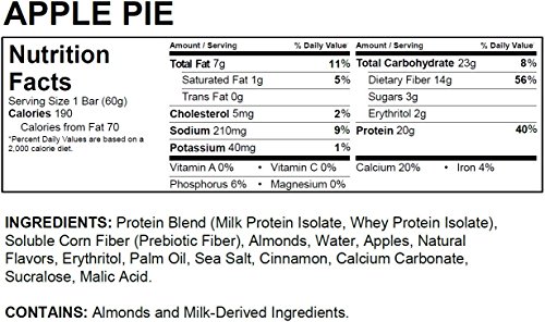 Quest Nutrition Protein Bar, Apple Pie, 20g Protein, 6g Net Carbs, 190 Cals, High Protein Bars, Low Carb Bars, Gluten Free, Soy Free, 2.1 oz Bar, 12 Count