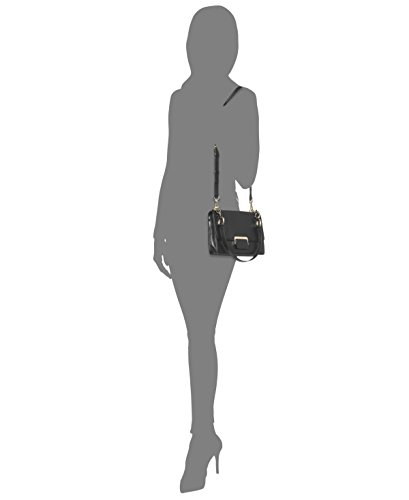 Single handle with 10-1/2" drop Push-lock closure Exterior features shiny rhodium-tone hardware and 1 back slip pocket Interior features 1 zip pocket and 4 card slots 9-1/4" W x 7" H x 2" D Silhouette is based off 5'9" model Saffiano leather