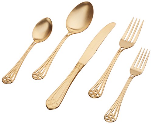 Herdmar "Vitral" 5-Piece Place Setting, 18/10-Inch, Full Gold Matte Finish