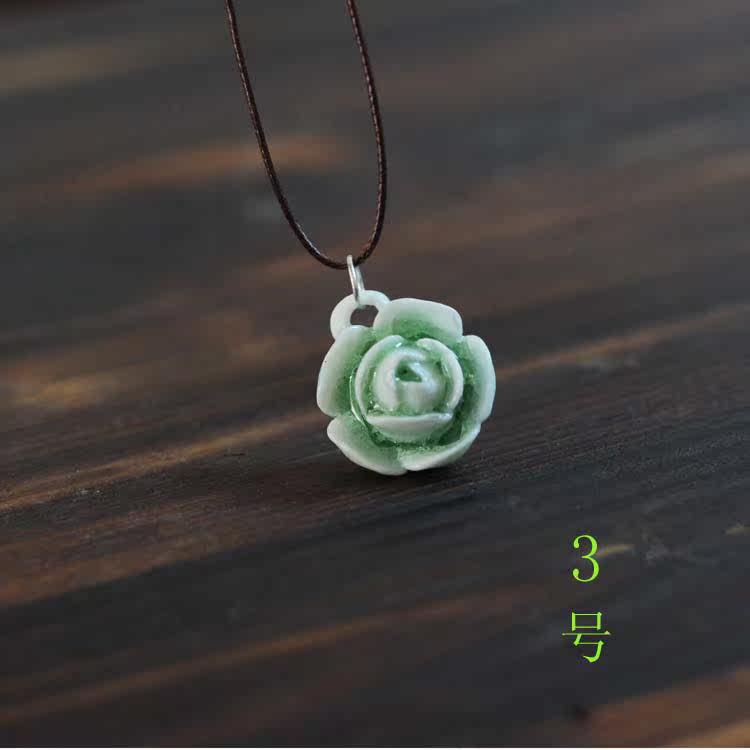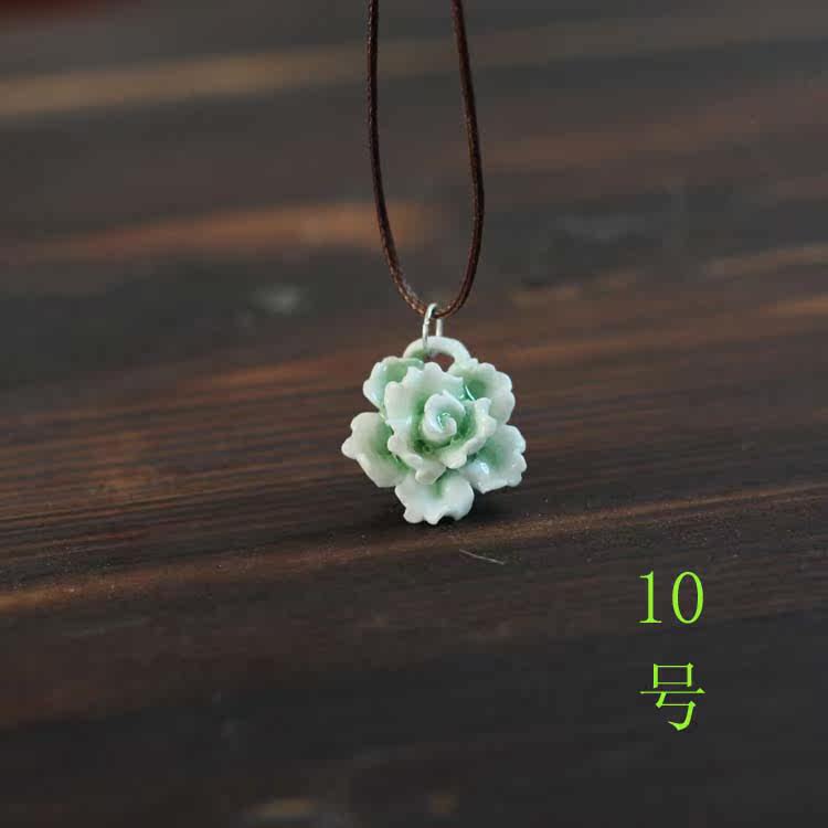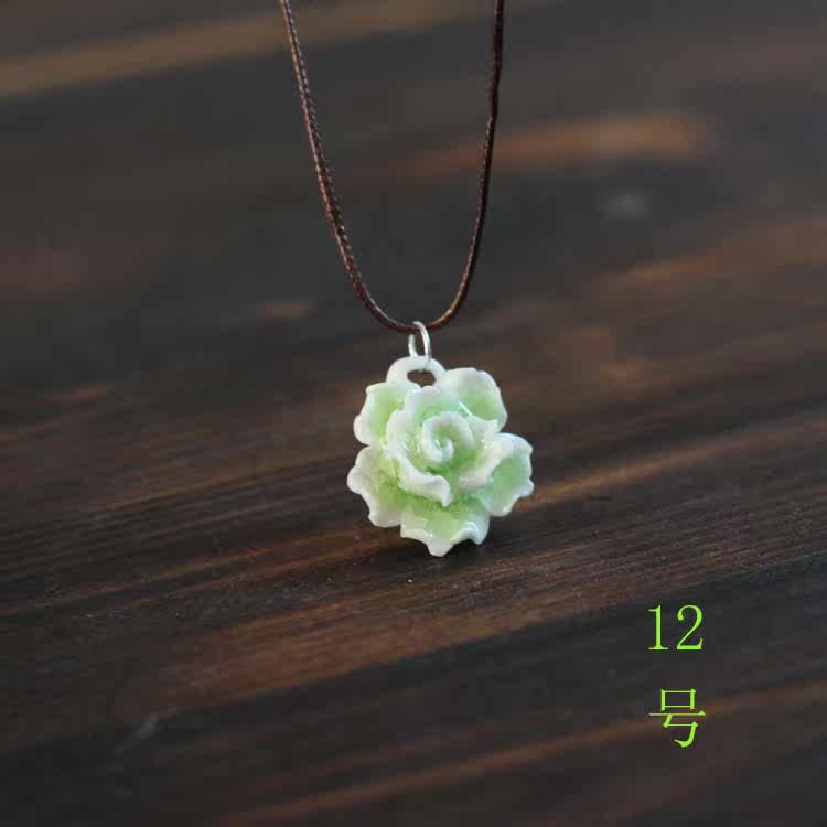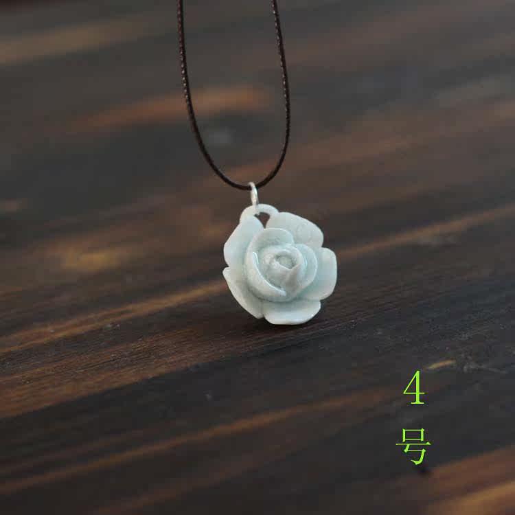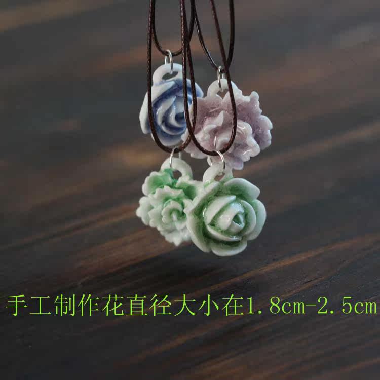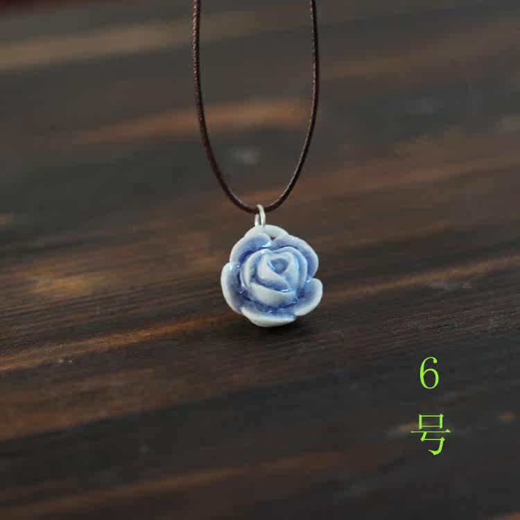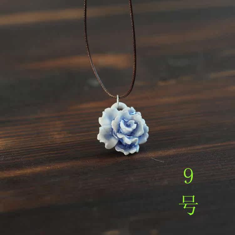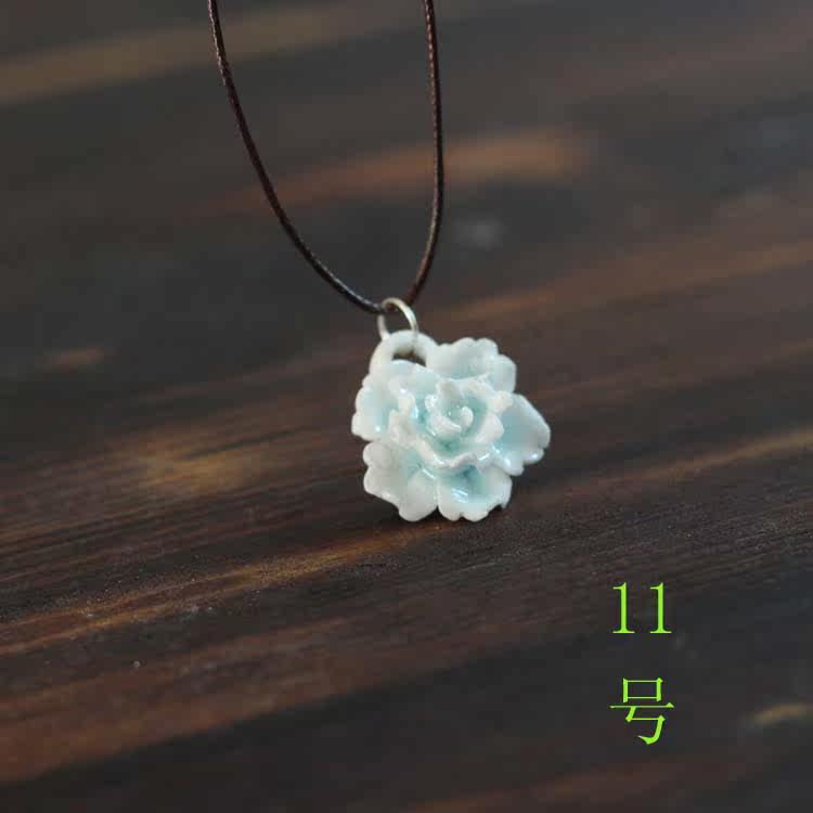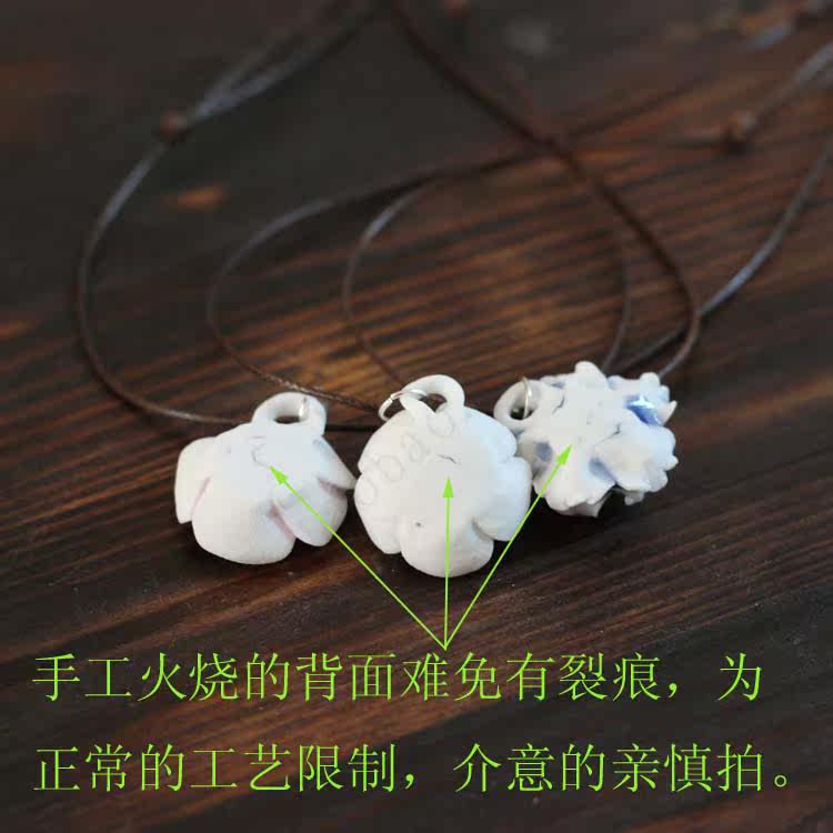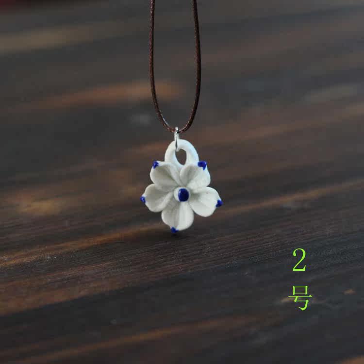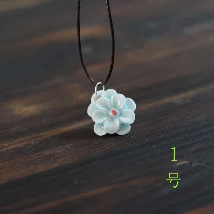 [Hand] small ceramic flower collarbone chain pendant necklace fine jewelry national wind