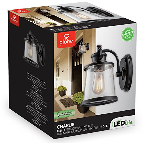 Update your space with Globe Electric's Charlie Outdoor Wall Sconce. The oil rubbed bronze finish enhances your space while the clear seeded glass shade makes sure your area is bright. Shining with the brightness of a 60 watt incandescent bulb, this included LED bulb uses only 7 watts of power saving you money in electricity costs. With a 2700 kelvin color temperature, this fixture emits a soft white light that is easy on the eyes. Completely dimmable with a compatible dimmer switch, you can create the lighting mood and ambiance you desire. Includes all mounting hardware for quick and easy installation and one 7 watt (60 watt equivalent) LED bulb.Feature