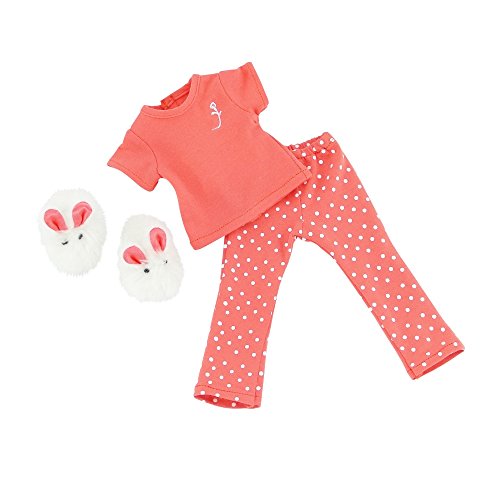 -. Title : 14 Inch Doll Clothes/Clothing | Coral Pajamas PJ Outfit with Fluffy Bunny Slippers | Fits American Girl Wellie Wishers Dolls