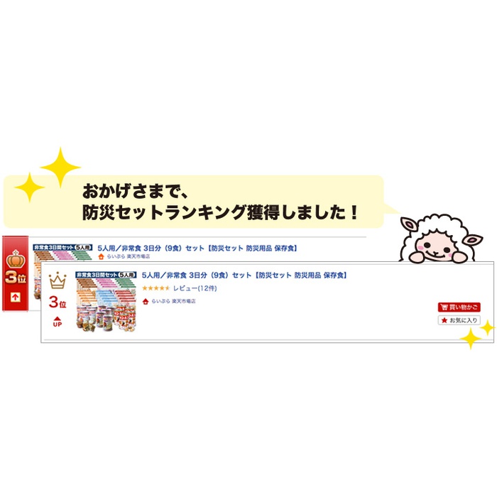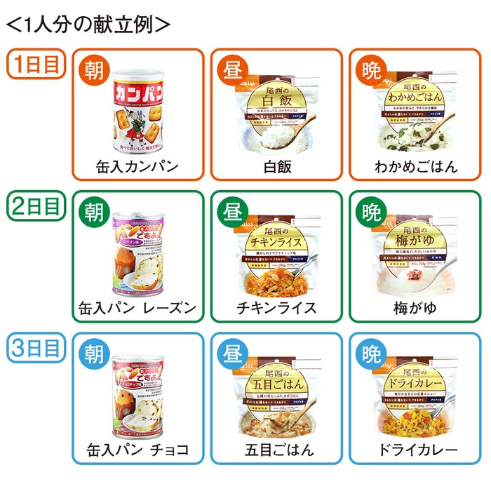 【지진/재난/대비/방재/상품】 5인용/비주식 3일분(9식)세트【방재 세트 방재 용품 보존식】】【알파 미 빵의 통조림 캄파니아(Kampaniya) 가족용 단체용】(지진 대비 방재 세트 피난 세트)