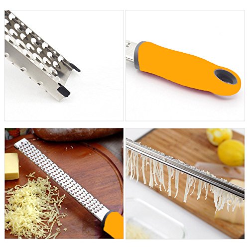 - 1. Cheese Grater & Zester are made of food grade stainless steel and non-slip silicone rubber.