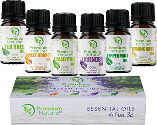 - ESSENTIAL OILS. There are six, 100% pure natural essential oils in this set for you to enjoy – eucalyptus oil, lavender essential oil, lemon grass oil, peppermint essential oil, orange essential oil and tea tree oil. This essential oils set can be used with essential oil diffuser.