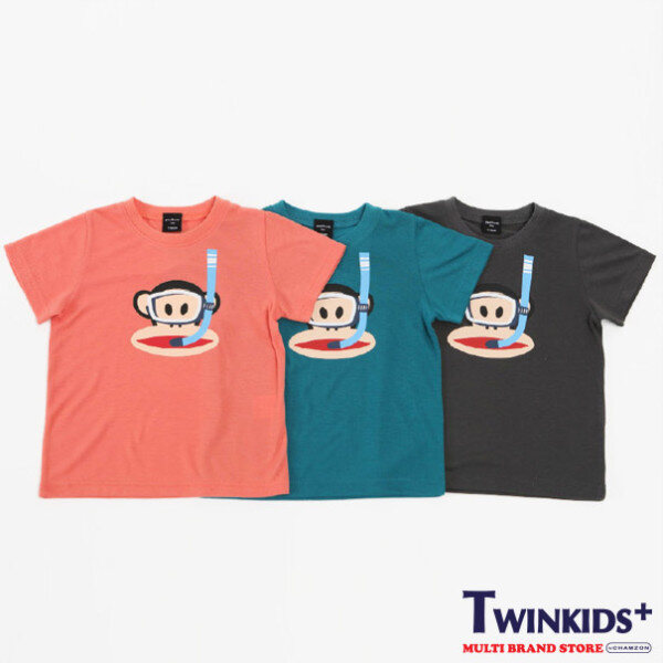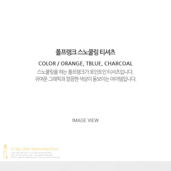 스노쿨링을 하는 폴프랭크가 포인트인 티셔츠.귀여운 그래픽과 깔끔한 색상이 돋보이는 아이템입니다