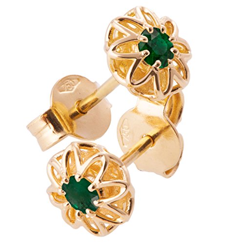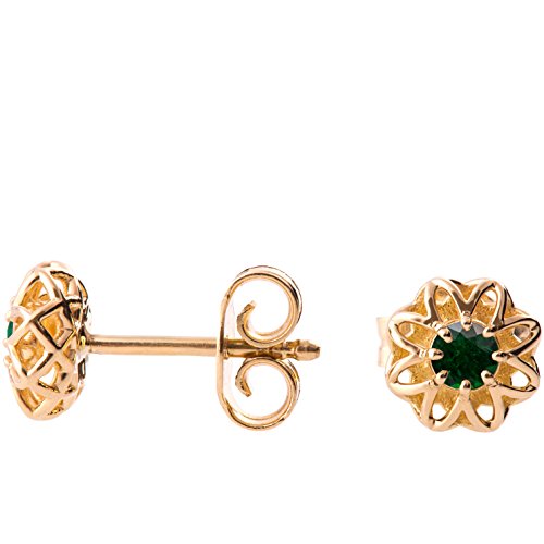 -. Title : 18K Solid Yellow Gold Unique Celtic Earrings For Women Set With Emeralds