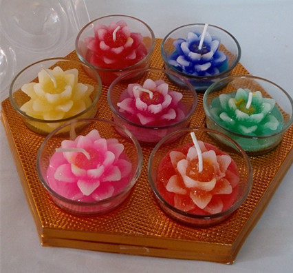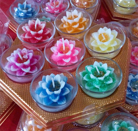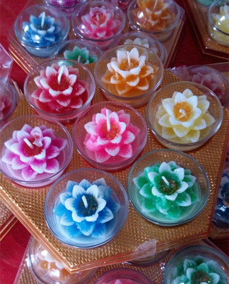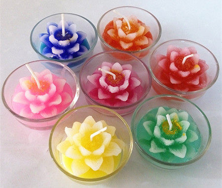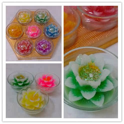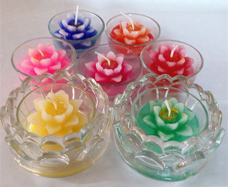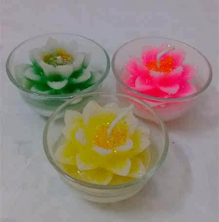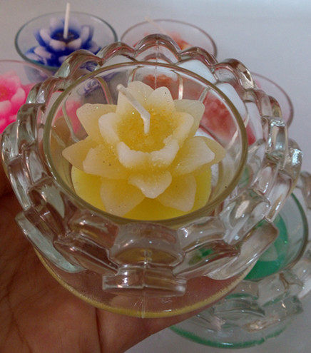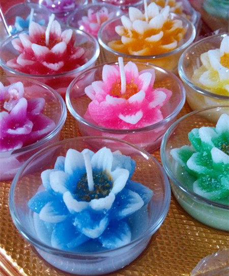 Colorful lotus-shaped butter lamp, burning smoke-free, fire stability, glass can be recycled.