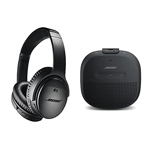 -. Feature : Bose QuietComfort 35 Wireless Headphones II with Microphone - 12" USB Charging Cable - 47.2" Audio Cable - Carrying Case - Airline Adapter - Bose 1 Year Limited Warranty - Bose SoundLink Micro Bluetooth Speaker, Single, Black / Material of Construction: Glass-filled nylon body, Alcantara covering, steel headband / Noise Cancellation: Active / NFC: Yes / Indicators: Battery, Bluetooth
