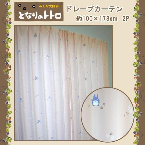 淡いベージュのシンプルなデザインでどんな部屋にも合わせやすい。よーく見ると、まっくろくろすけもいます♪ドレープカーテンとは、厚手のカーテンで、通常室内側のカーテンに用いられます。※遮光カーテンではありませんのでご注意ください。 |