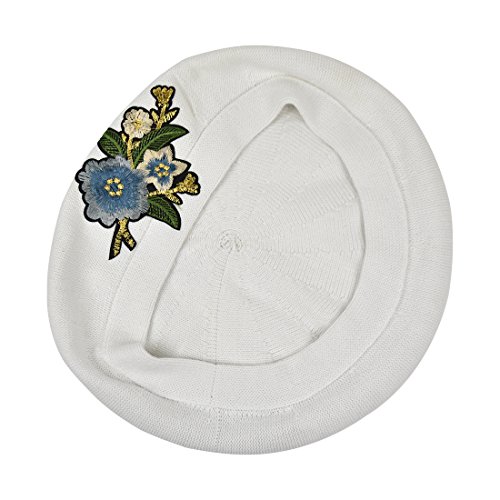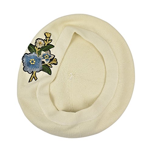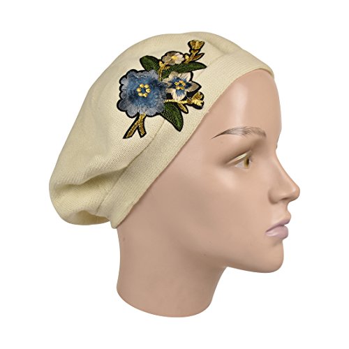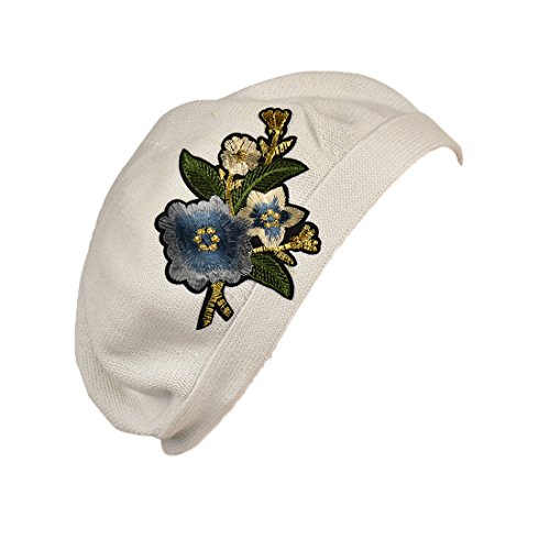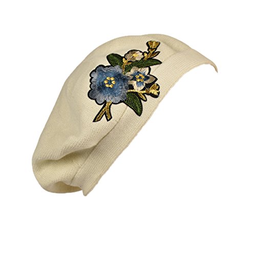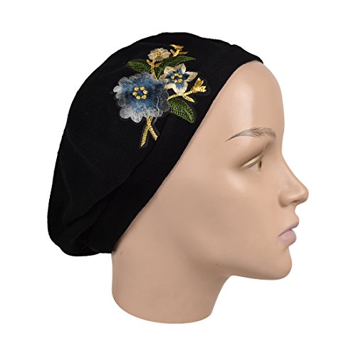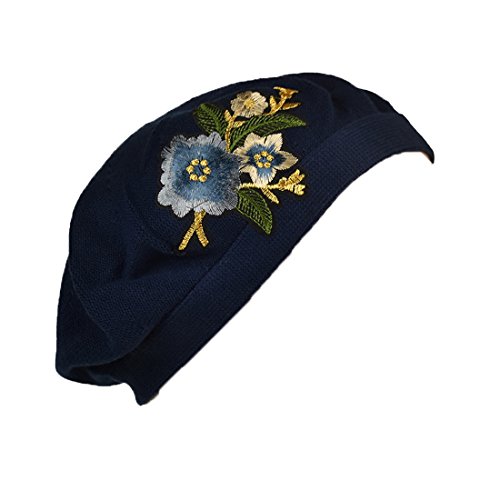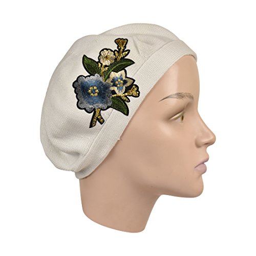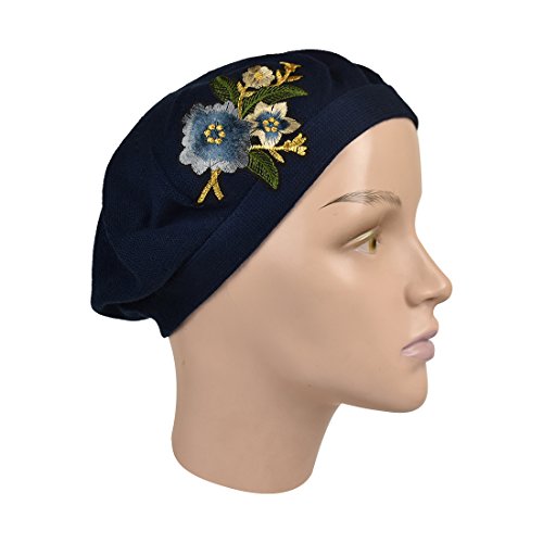 Studio : Landana Headscarves Publisher : Landana Headscarves Binding : Apparel Product Description This is a 100% cotton beret/tam for women. There is a pretty blue flower bouquet applique which adds subtle beauty to this beret hat and looks great on! It is cool and comfortable and has a flat band edge. The beret has a 10 inch diameter when laid flat with a 31 inch circumference, and the breathable cotton knit makes for comfortable wearing all day. This beret will serve you well, whether it's for style, modesty, or cancer, alopecia, or medical hair loss. Look great in this hat from Landana! 0
