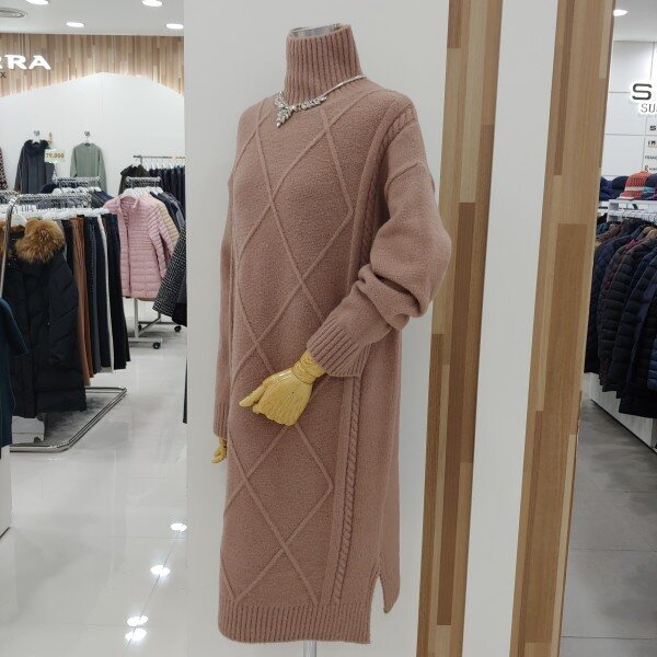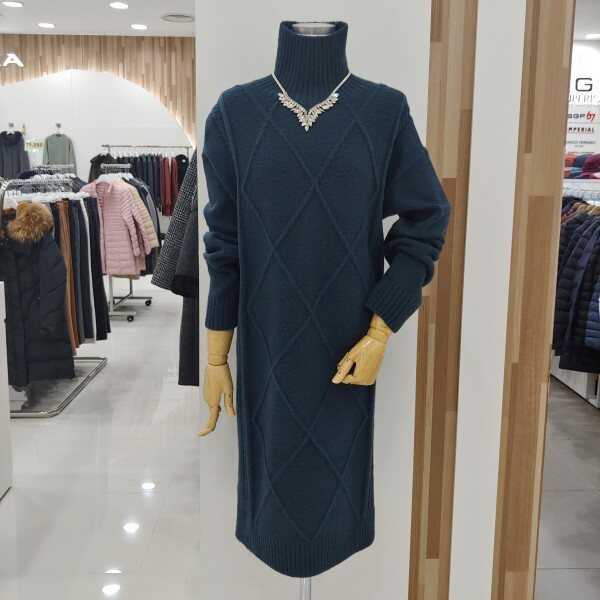 터들 네크라인의 니트 롱원피스를 소개합니다
