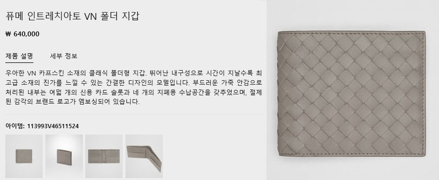 | 모델명 | 보테가 베네타 남성 반지갑 113993 1524 |