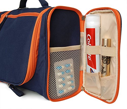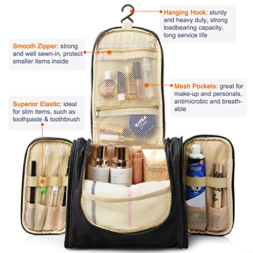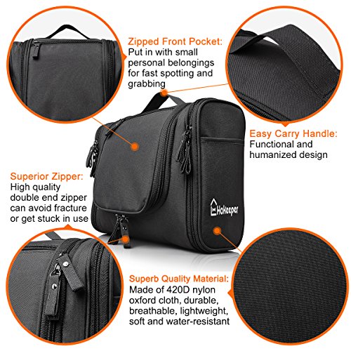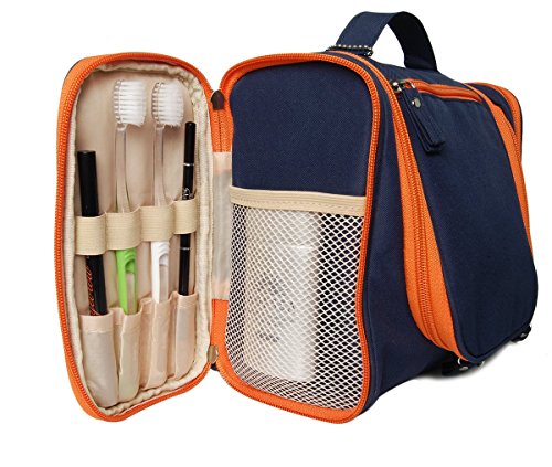-. Feature : DURABLE MATERIALS - This Toiletry Bag is Made of Superb Quality 420D Nylon Oxford materials and Waterproof Coating to withstand common bathroom toiletries. The durable water-resistant fabric is convenient to wipe clean and dry easily. The stitching is well sewn and reinforced at all stress points. The zippers all operate smoothly. / LARGE CAPACITY - Size: 10.2 x 4.5 x 8.5 inches. Excellent capacity can meet all your different needs. Fits Full-Size Bottle, Suitable for Family/Couple or Long-Term Travel. You can put your make-up, shampoo, soap, toothbrush, toothpaste, shaving kit and so on, all in one place. Make your travel comfortably and easily to have all your necessities in one bag. / MULTIFUNCTION - Built-in heavy duty hanging hook allows more easier hanging and access on the bathroom door, shower rod or towel rack. Durable carrying handle is convenient to carry or hung up. Can be folded very easily and thinly when not in use. Ideal for business trip, vacation, gym, makeup, outdoors activities, picnic, bathroom organization and more. / MULTIPLE COMPARTMENTS - Compartments in various sizes make the bag functional and highly organized. Extra cushion, protect your belongs from shocking. Elegant design, foldable and lightweight, organizing maximum toiletries. Perfect for one or two person to traveling. / LIFETIME WARRANTY! - Don't waste your money and time on other flimsy toiletry bags if you have a lot of stuff to carry. We guarantee good after-sale service for this item. Please rest assured to buy!