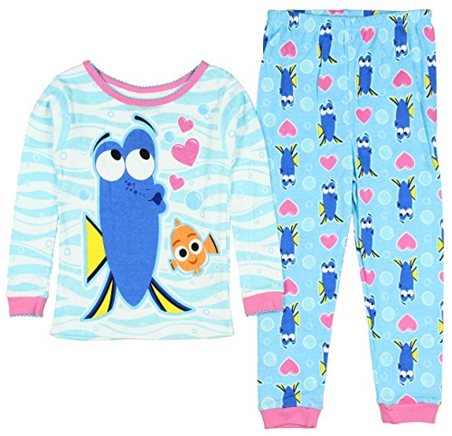 With help from Nemo and Marlin, Dory the forgetful fish embarks on a quest to reunite with her mother and father. This toddler pajama set features great graphics in vivid colors. Made of 100% cotton. It features a long sleeve top, and an overall graphic on both top and pants.Feature