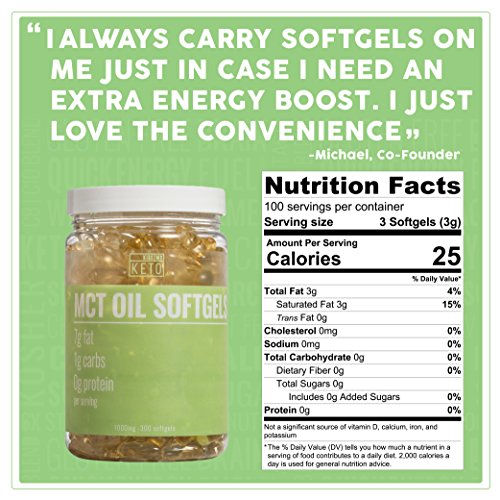 -. Feature : GENTLE ON THE STOMACH AND EASY TO DIGEST. Maintain & balance your level of ketosis or use to jumpstart your Ketogenic Diet. Start with 1 softgel capsule and gradually increase dosage to servings size. Sourced from 100% coconuts. No palm oil, chemicals or artificial flavors - completely flavorless! Safe for everyday use blend of C8 and C10 oil that is easily absorbed. Get the good fats your body needs with these potent low carbohydrate fractioned medium chain triglycerides (MCTs) supplement. / TRAVEL WITH EASE WITH THE CONVENIENCE and PORTABILITY OF SOFT GEL MCT PILLS. Take caps with you through airport security on airplanes, in your car, or at the office! Our essential MCT fatty acid blend comes in cap form for easy consumption and digestion and supports a healthy lifestyle. No sugars, No carbs, High in fat. Suppress your appetite and control your cravings! Gluten free, kosher, medical grade, concentrated and organic MCT oil supplements that are portable. / DROP MCT CAPSULES IN YOUR COFFEE TO MAKE THEM BULLETPROOF. Esssential For Keto and Paleo Dieters - Our pharmaceutical grade, non GMO brain octane is the ultimate bullet proof oil in pill form that is formulated for gut health to prevent hunger and kick-start your ketone levels. Quality, unrefined powerful MCT oil that is easily pairs well with ghee butter, smoothie mix, or during cooking. Great for pre exercise or post workout. / QUICKLY BOOST ENERGY, NATURALLY IMPROVE METAL FOCUS, MOOD & ENDURANCE & ENHANCE DIGESTION: MCT is high-grade, fast fuel for your brain and muscles without the caffeine jitters or the crash. Experience clean digestion without constipation and enhanced nutrient absorption with caprylic oil. The pure MCT coconut oil in tablet form will increase clarity and cognitive function, alleviate headaches, boost your immune system and maximize your energy levels throughout the day. / GET INTO KETOSIS, SKYROCKET METABOLISM & BURN FAT: Working all day? An athlete who loves intense sports and gym workouts? Stubborn belly fat & trying to detox & alter your lifestyle? Medium chain fatty acids balances and efficiently encourages natural metabolic functions and mental performance without the use of nootropics. Plan, train hard. and perform even better, feeling energized! If you are looking for ways to improve your way of life and even promote weight loss, then we've got you covered