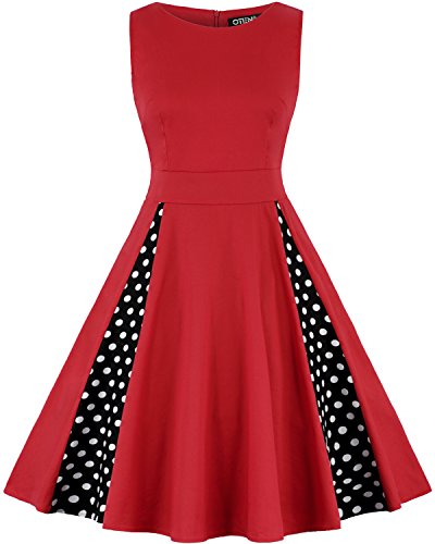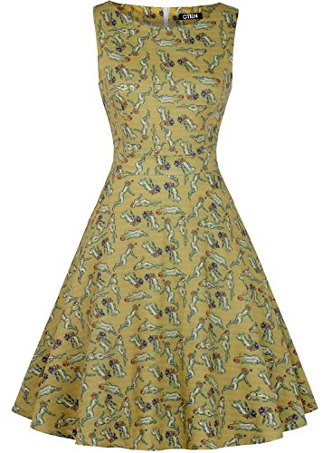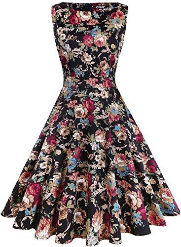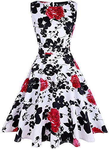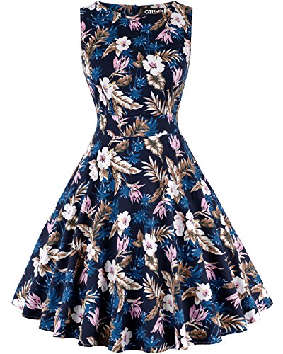 OTEN Vintage Sleeveless 50s Floral Dress for Women Cocktail Evening Party Features: Made of high quality fabric,soft and comfortable to wear.