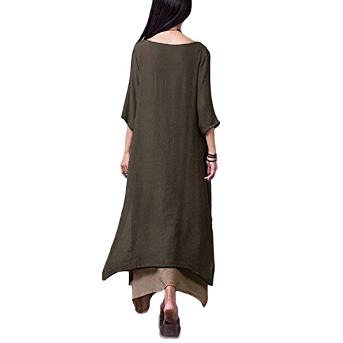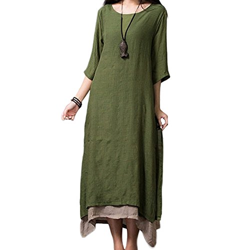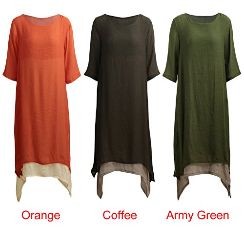 Feather:O-neck, half sleeves and ankle-length,Side split, layered and irregular hemline design,This cotton linen dresses is exactly an attractive stunner.
