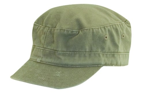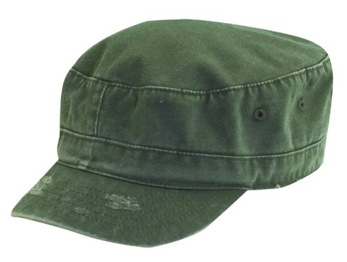 Feature : Distressed cadet hat for kids by Dorfman Pacfic / Distressed style with contrasting red stitching / 2 inch brim / Hook and loop closure / Made of 100% cotton