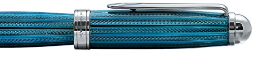 The unique Venetian blue metallic finish of the pen utilizes a multi-layer high-gloss lacquering technique. After each layer of the lacquer is applied, the barrels of the pen are heat-dried and then manually polished to achieve a highly reflective surface