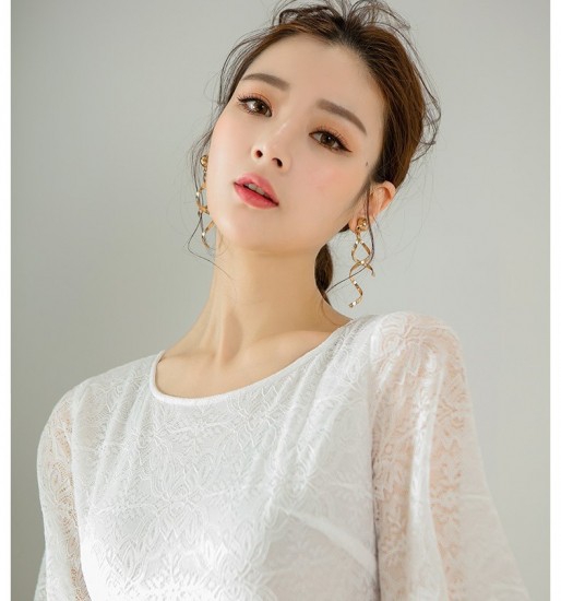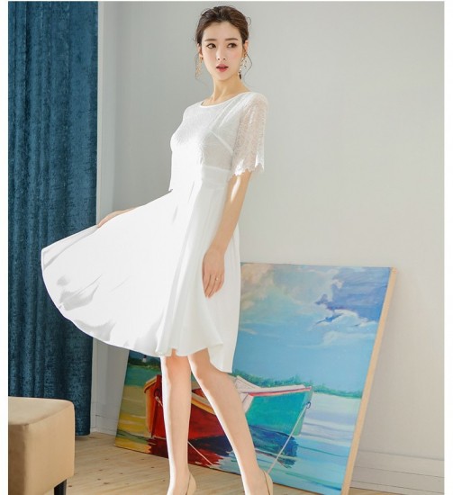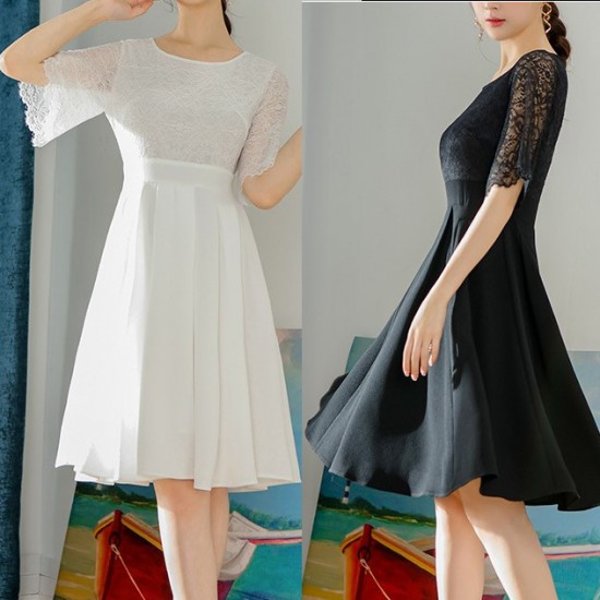 ワンピース ひざ丈 パーティードレス 透け感 レーストップ Aラインスカート 上品 可愛い お呼ばれ デート drgz2731
