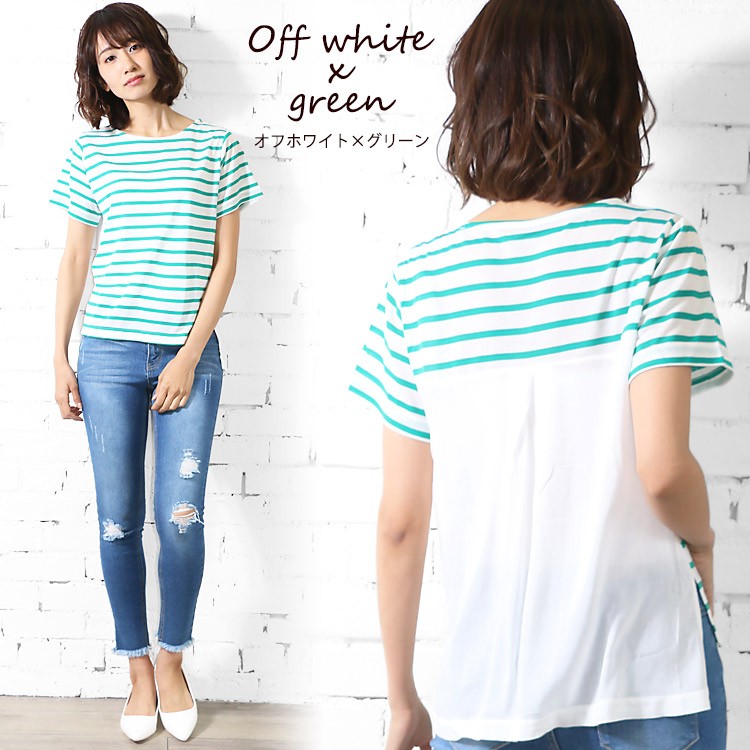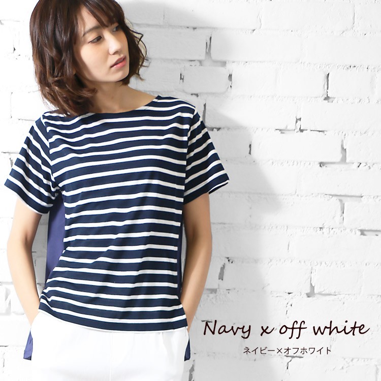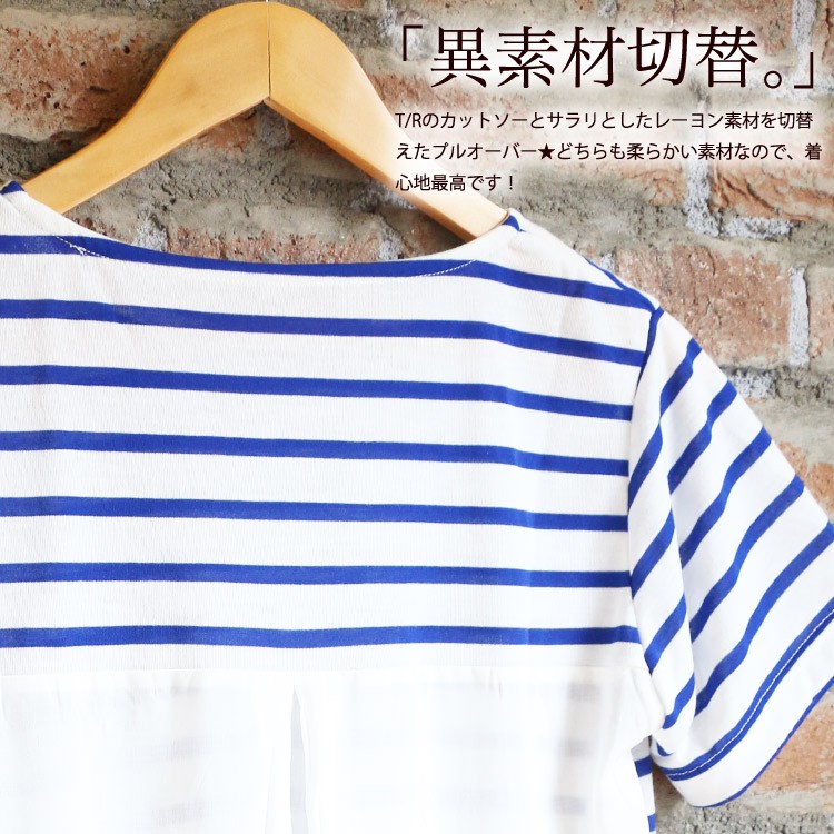 商品名:バック異素材切替ボーダープルオーバー