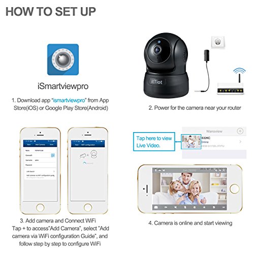 -. Title : Wireless Security Camera, itTiot 720P HD Indoor WiFi Home Surveillance IP Camera for Baby Pet Nanny Monitor with Pan/Tilt, Two Way Audio, Night Vision