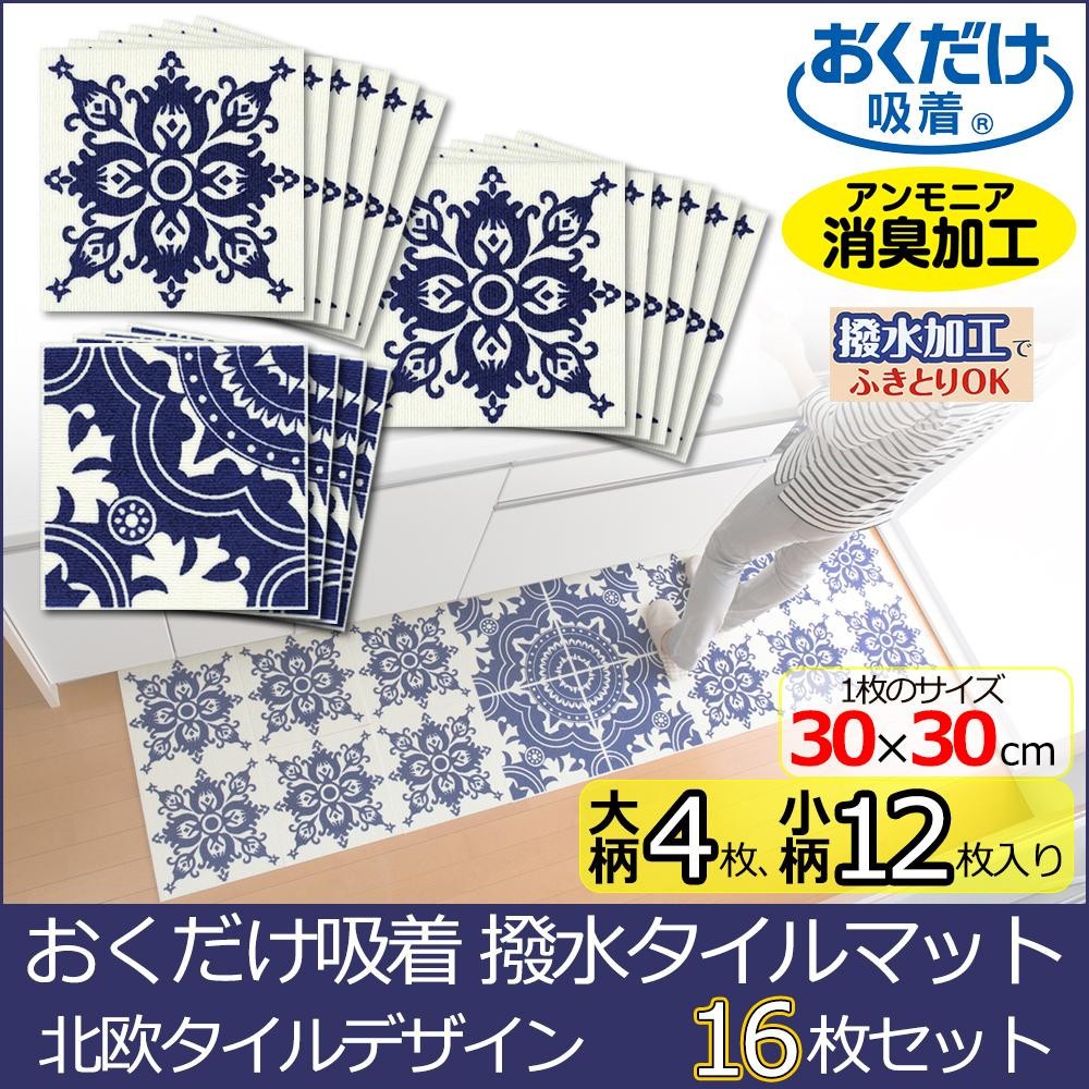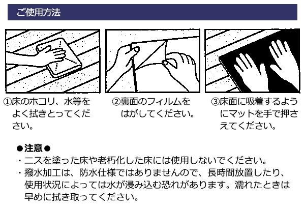 | おくだけで床に吸着!!ズレにくい撥水加工のタイルマット。 |
