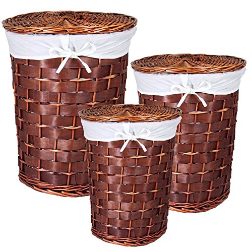 -. Title : Essential Décor Entrada Collection 3-Piece Dark Round Willow Hamper Set, 22 x 17.25 x 17.25-Inch