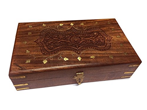 valentines Presents, Handmade Wooden Carving Inlay Jewelry Box, Storage Box, Vintage Box, Keepsake Storage Organizer Box 10 x 6 Inch